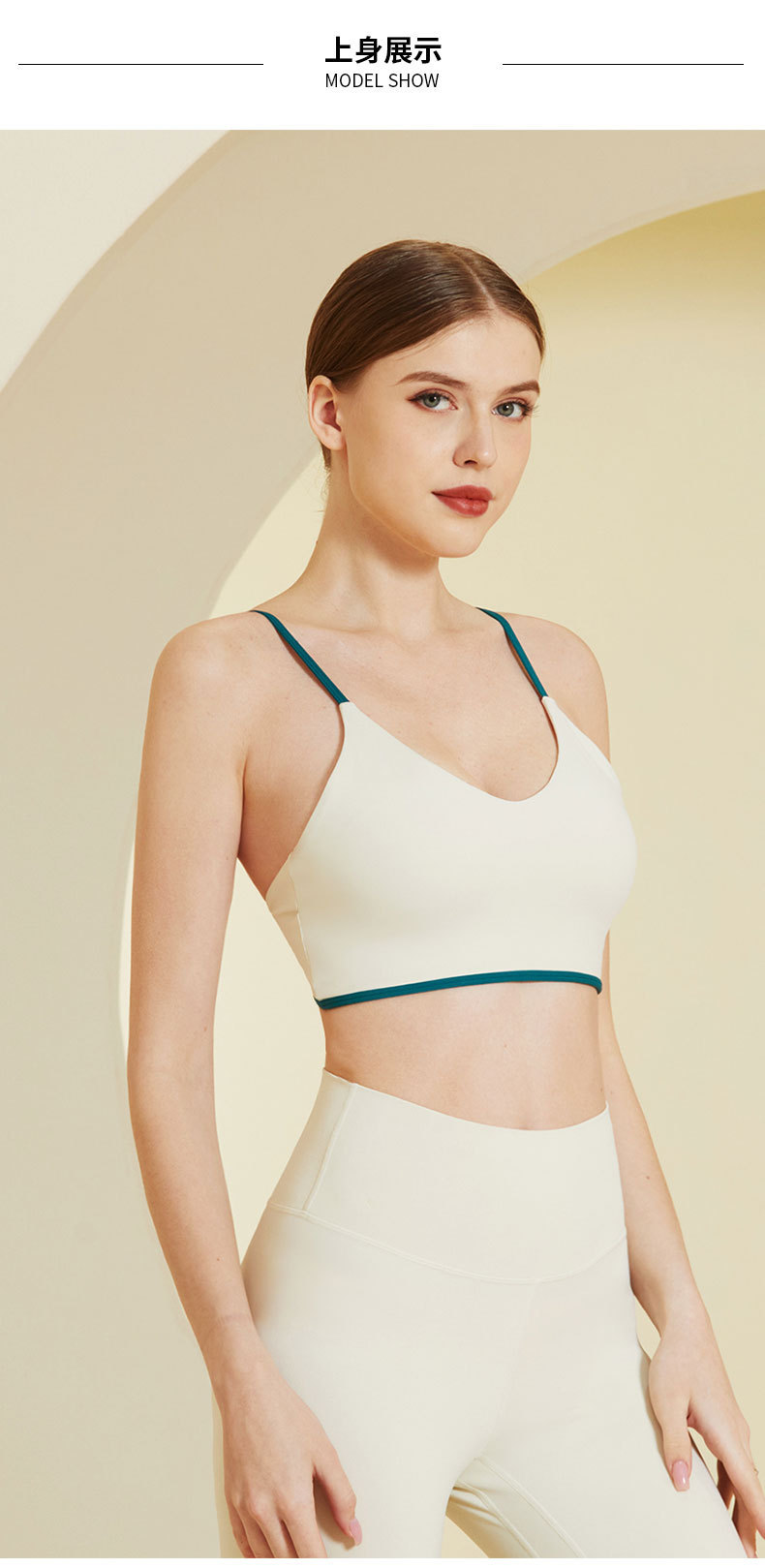 새로운 라이크라 대조 색상 패션 스포츠 속옷 여성용 클래식 섹시 컬러 매칭 슬링 브라 밴드 가슴 패드 요가 조끼