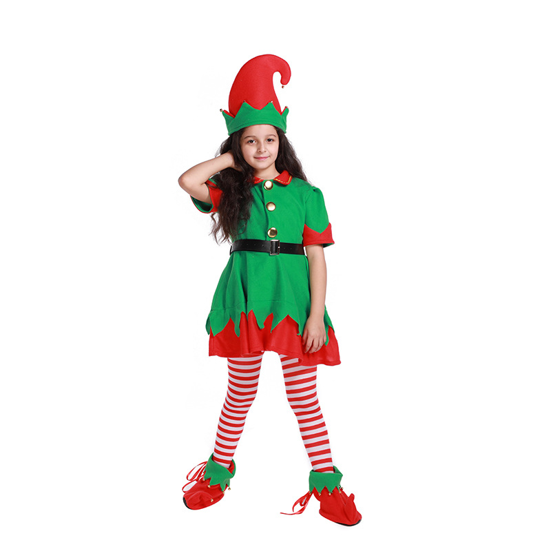 크리스마스 분위기 어린이 의류 귀여운 녹색 엘프 소년 소녀 코스프레 롤 플레잉 공연 의류스토어 가기