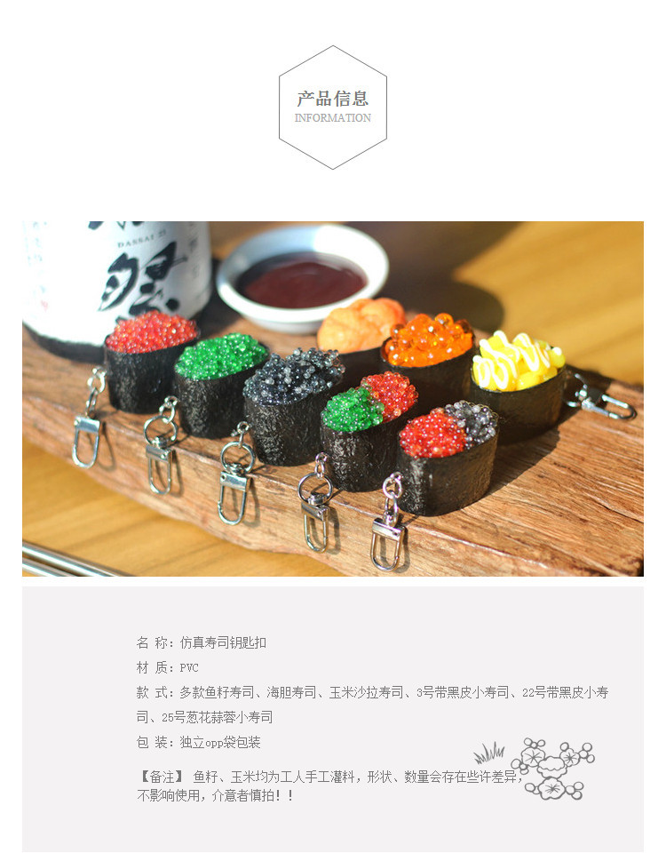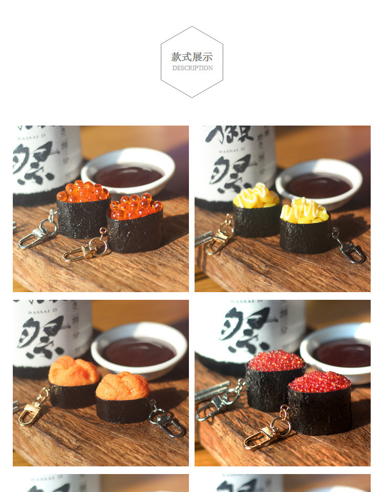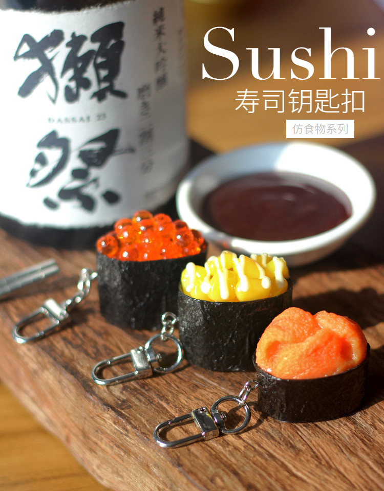 모조 음식 일본식 스몰 사이즈 물고기 씨 스시 키 체인 일본식 창조적 인 가방 펜던트 장식 선물스토어 가기
