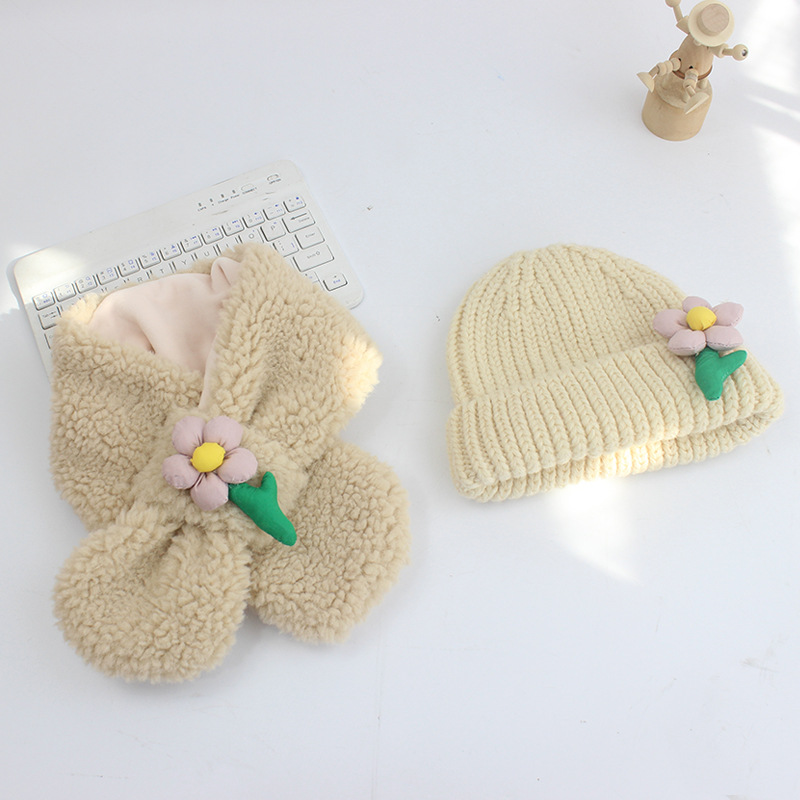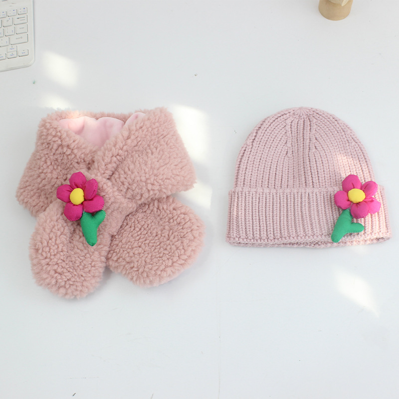 캔디 컬러 어린이 모자 스카프 투피스 세트 가을과 겨울 새로운 한국 꽃 소녀 모자 봉제 스카프 스카프 세트
