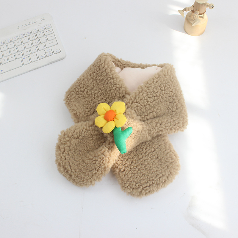 • 작은 꽃-카키 스카프-작은 꽃가루 장식