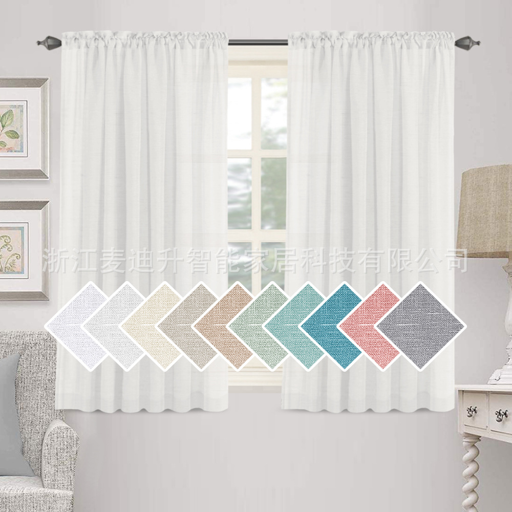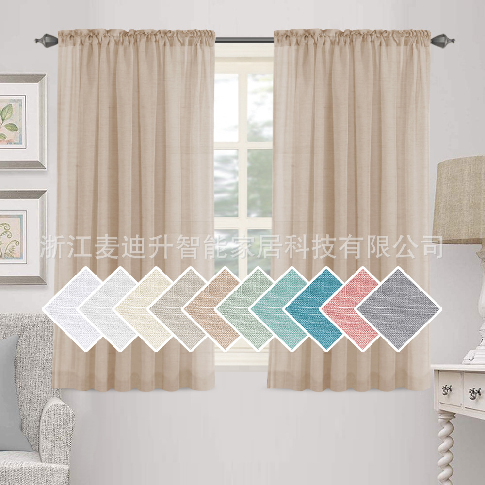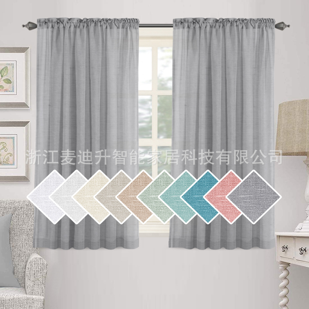 크로스 보더 아마존 핫 세일 린넨 창 스크린로드 커튼 일반 색상 반 음영 심플 라이트 럭셔리 완성 된 패브릭 커튼스토어 가기