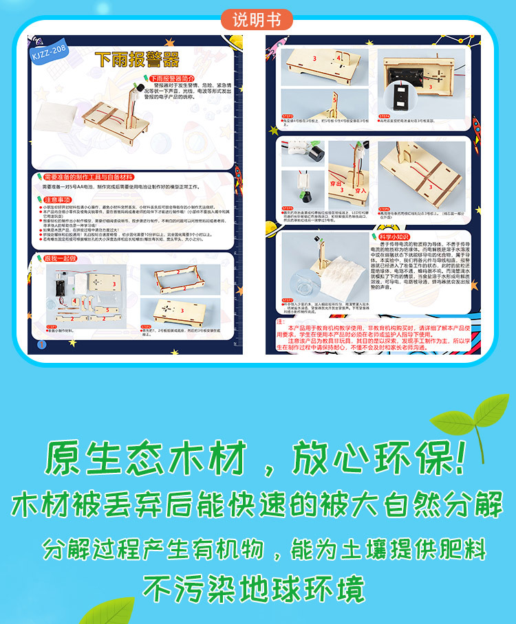 학생들의 재미있는 수제 창조적 인 작은 발명 기술 작은 만들기 DIY 비 경보 교육 과학 및 교육 완구스토어 가기