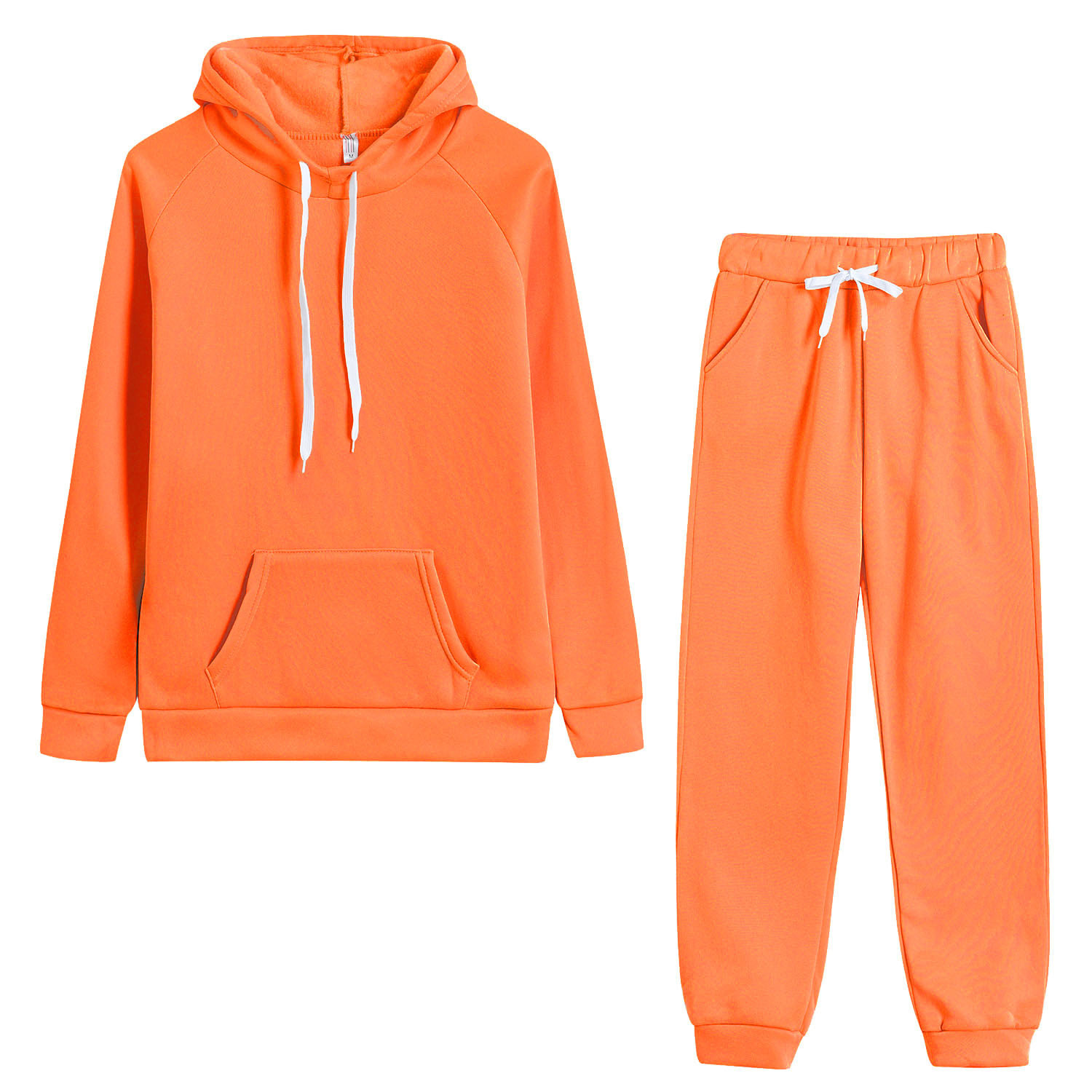 2023 한국 신상 무지 빅사이즈 긴팔 후드티 세트 여성 캐주얼 루즈 투피스 여성 출퇴근룩