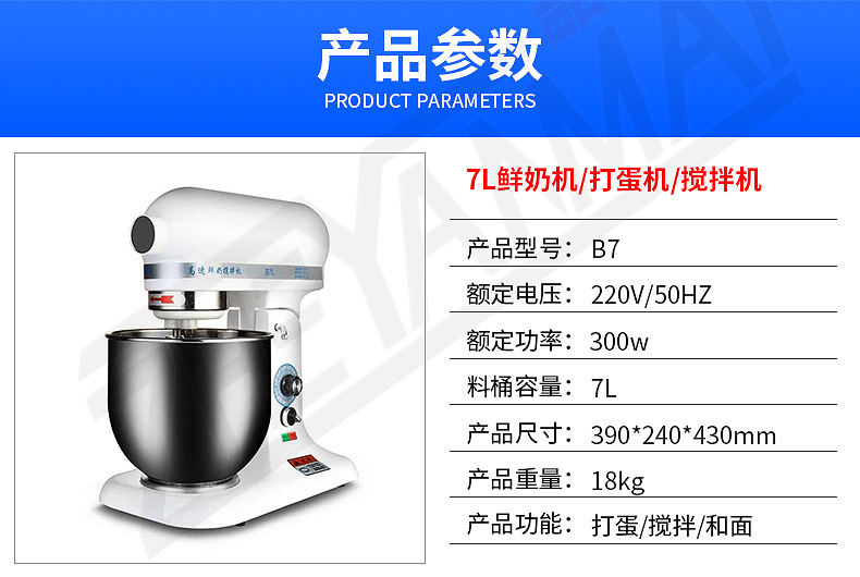 공장 직접 요리사 기계 저소음 가정용 소형 7L 국수 기계 상업용 크림 믹서 국수 기계 신선한 우유 기계스토어 가기