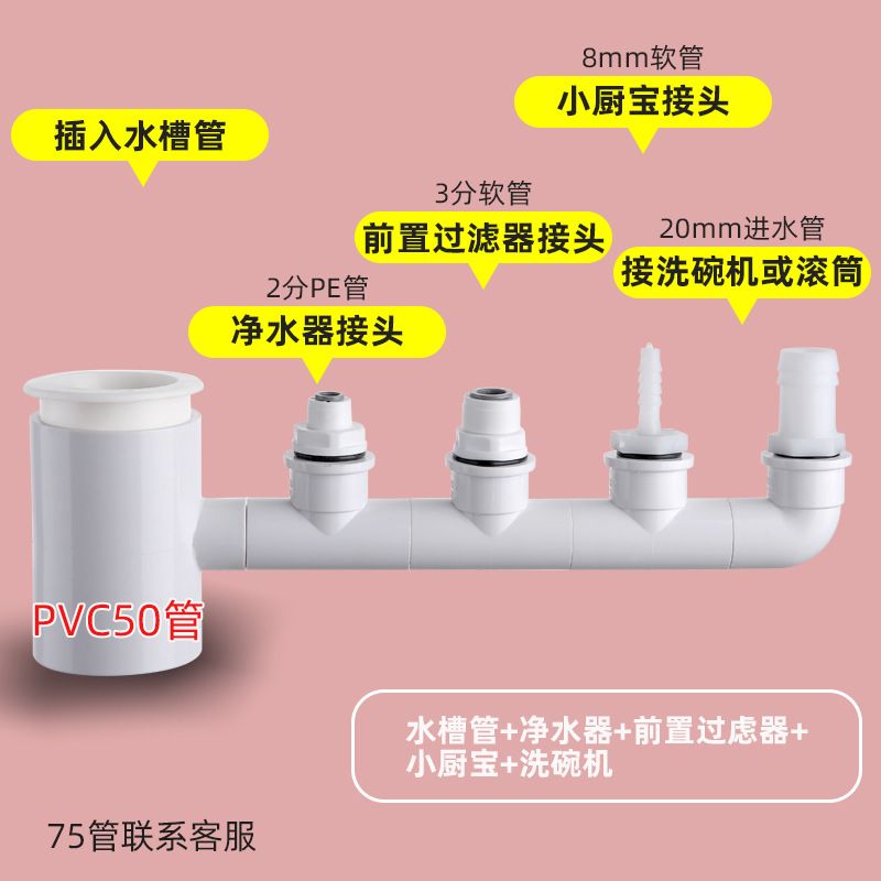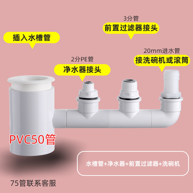 주방 싱크대 식기 세척기 정수기 하수관 소형 주방 보물 세탁기 배수 파이프 투인원 조인트 티스토어 가기