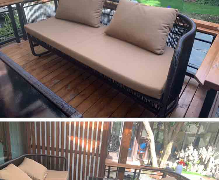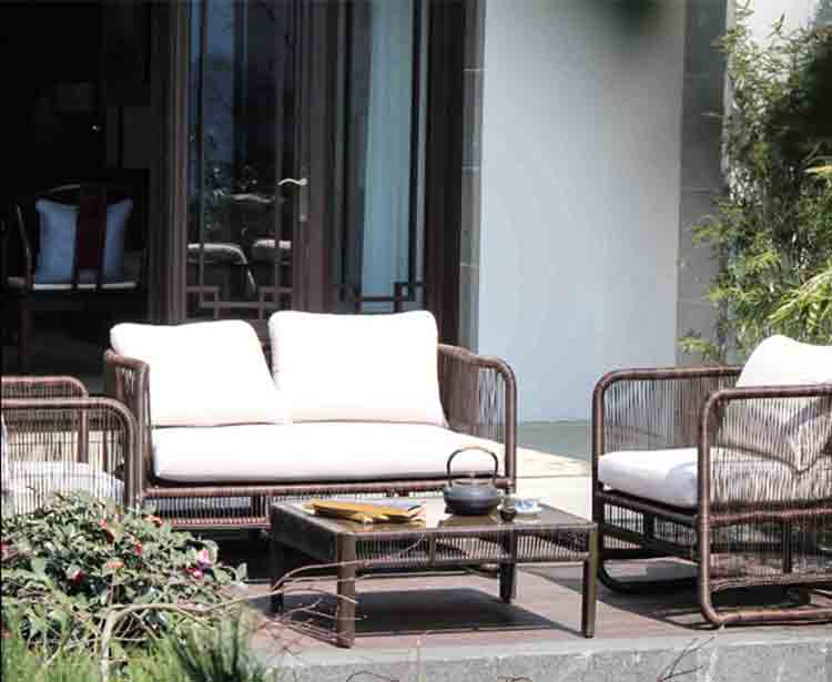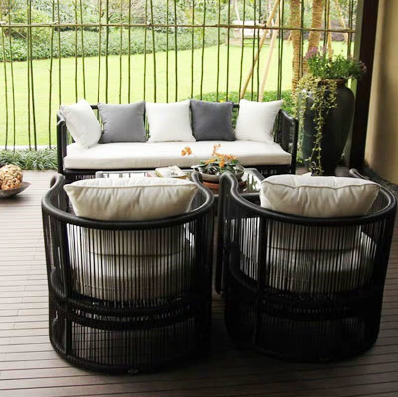 야외 등나무 소파 안뜰 모델 룸 창조적 인 새로운 중국 스타일 모조 등나무 소파 커피 테이블 조합 발코니 등나무 의자 가구스토어 가기