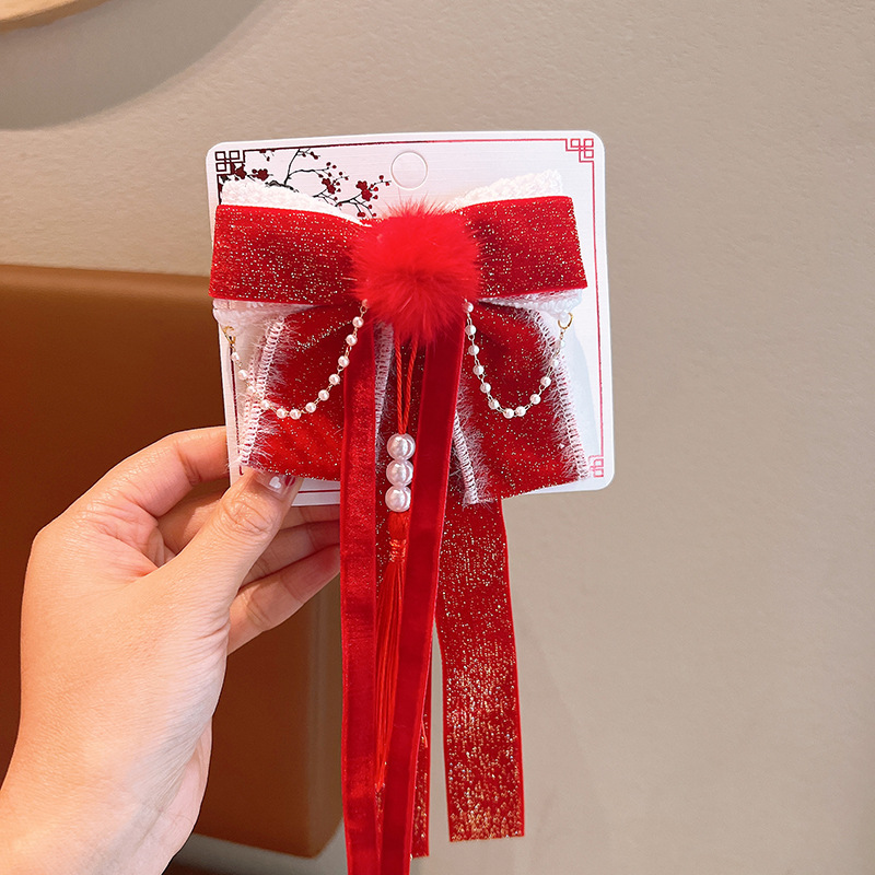 빨간 벨벳 클립 새해 공주 헤어 액세서리 어린이 헤어핀 활 티아라 소녀 머리 머리 뒷면스토어 가기