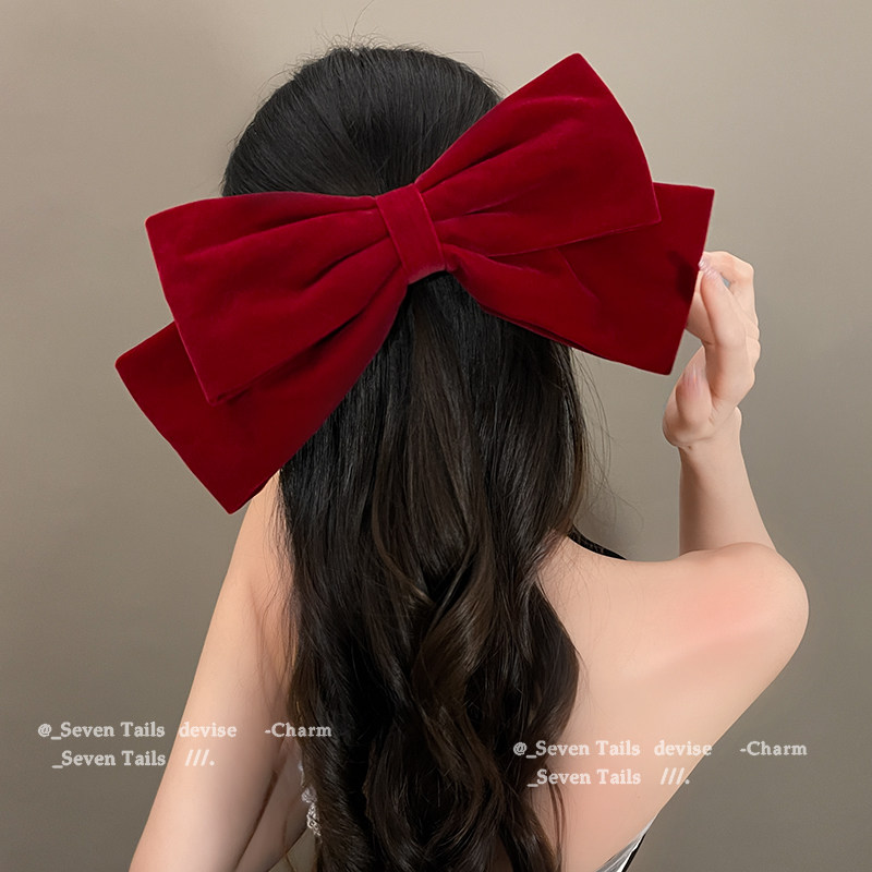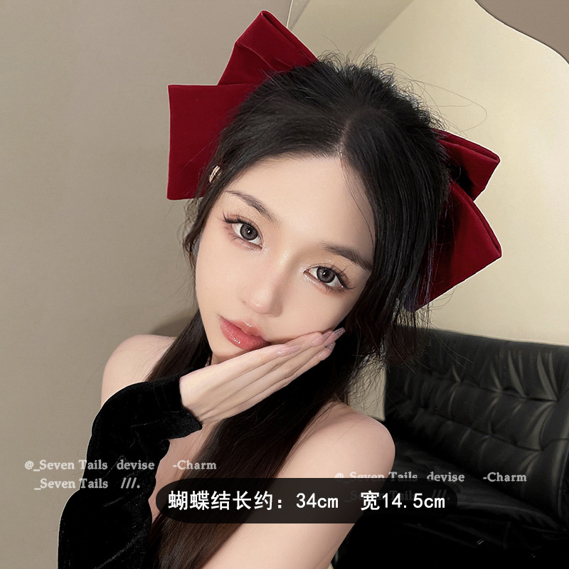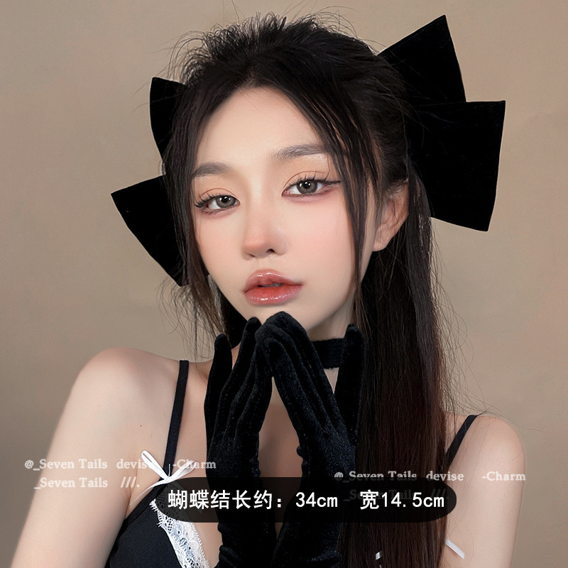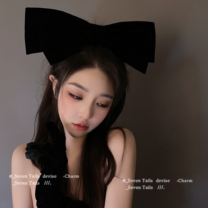 프랑스 스타일 블랙 오버 사이즈 벨벳 활 사이버 연예인 머리핀 여성용 고급 모자 머리 스프링 클립의 큰 뒷면스토어 가기