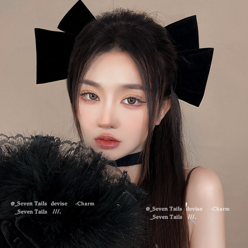 프랑스 스타일 블랙 오버 사이즈 벨벳 활 사이버 연예인 머리핀 여성용 고급 모자 머리 스프링 클립의 큰 뒷면