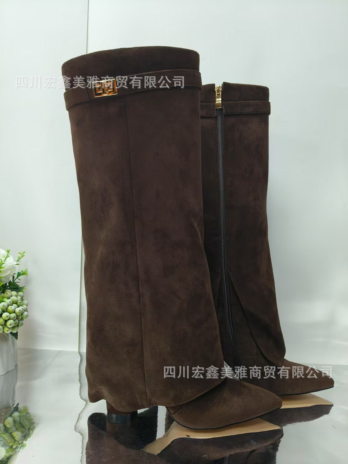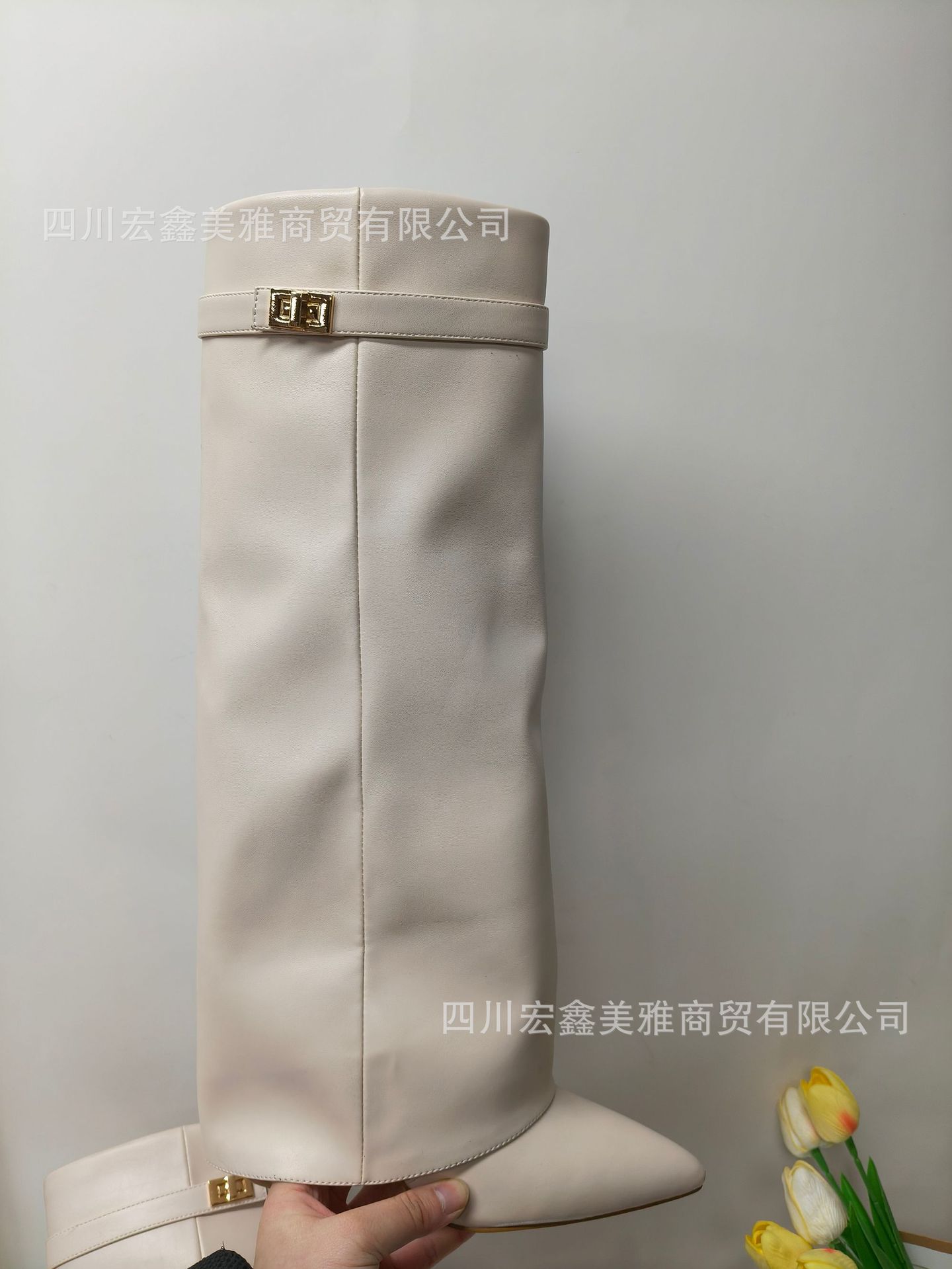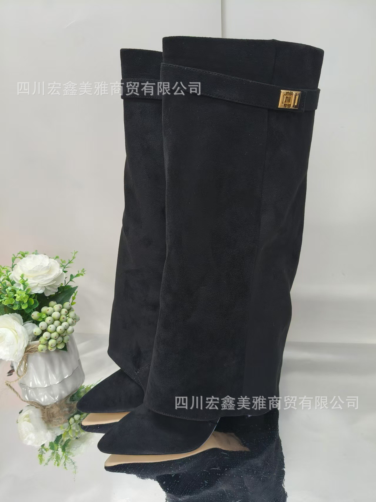 2025년 신상 대외 무역 스타일 포인티드 토 라지 사이즈 스트레이트 메탈 버클 중간 길이 부츠, 여성용 빅사이즈 두꺼운 굽 팬츠 부츠스토어 가기
