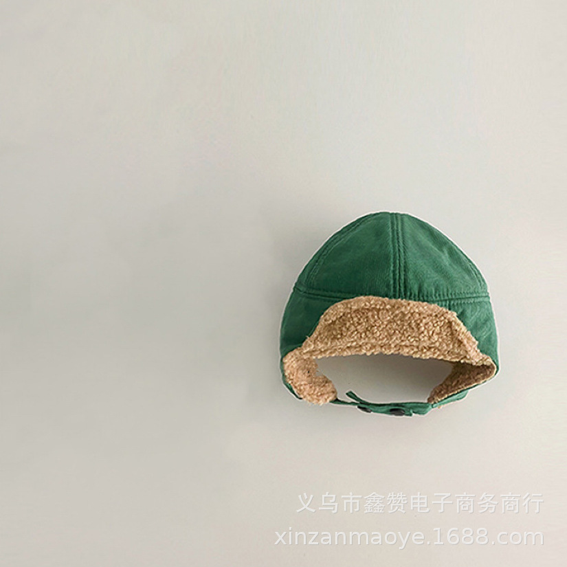 한국 아기 가을과 겨울 기모 따뜻한 귀 보호 레이 펑 모자 소년과 소녀 양고기 양모 야외 방풍 모자 유행