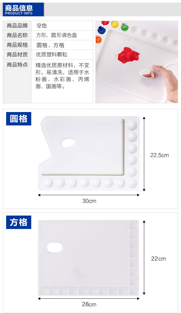 빈 색상 선호 대형 타원형 팔레트 파인 아트 구 아슈 중국어 회화 아크릴 그림 안료 사각형 팔레트스토어 가기