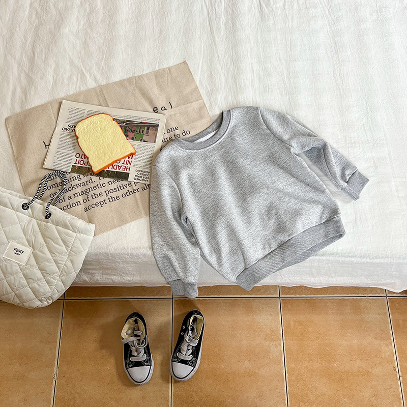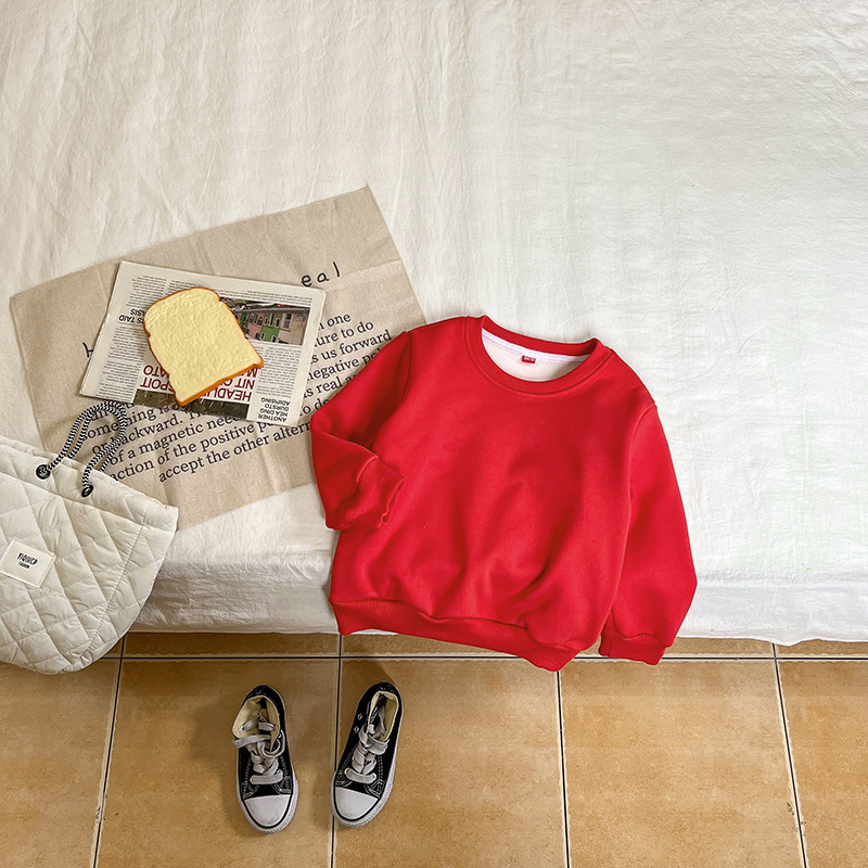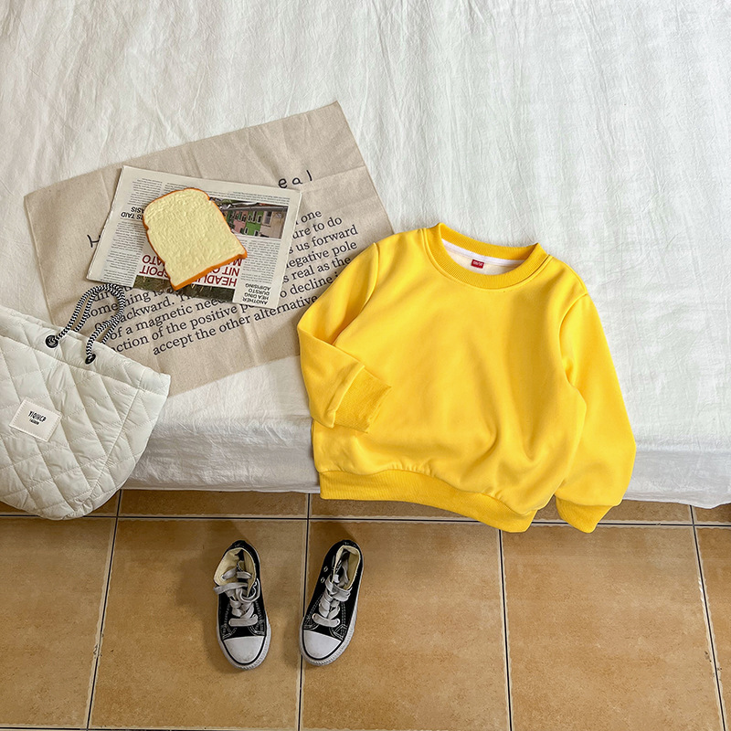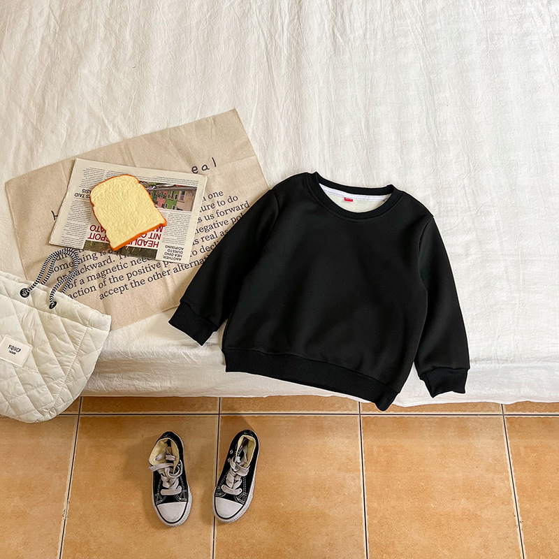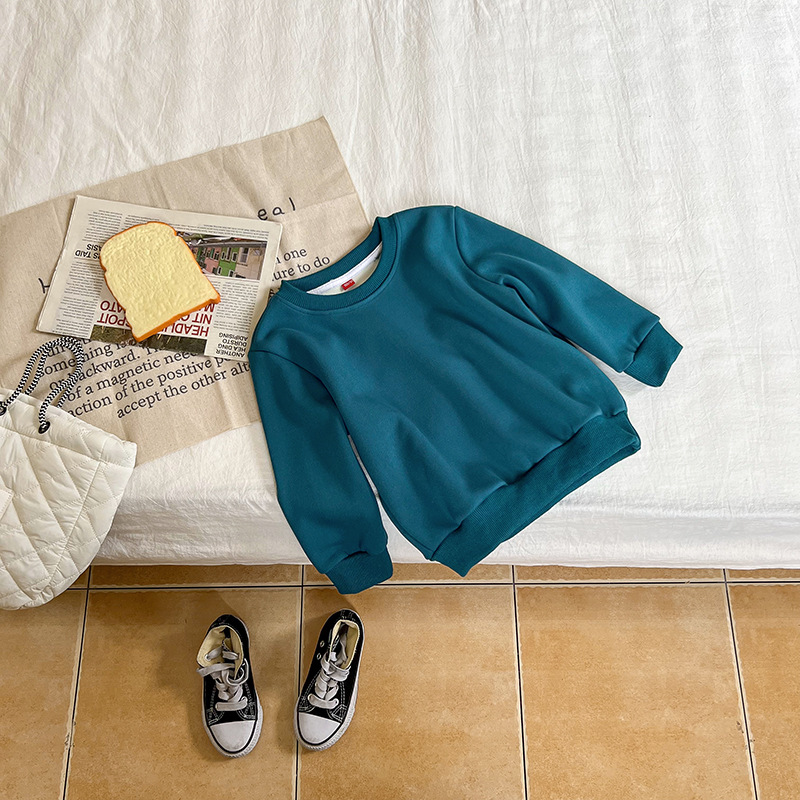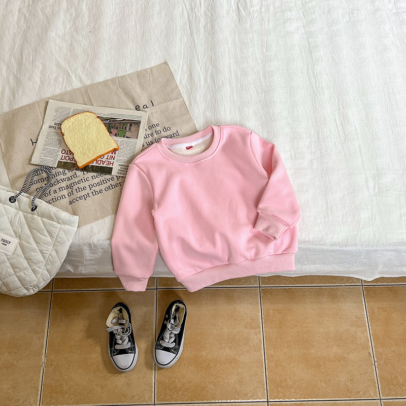 가을과 겨울 새로운 어린이 스웨터 단색 기모 가벼운 판 소년과 소녀 아기 코트 긴 소매 코트 공장 직접스토어 가기