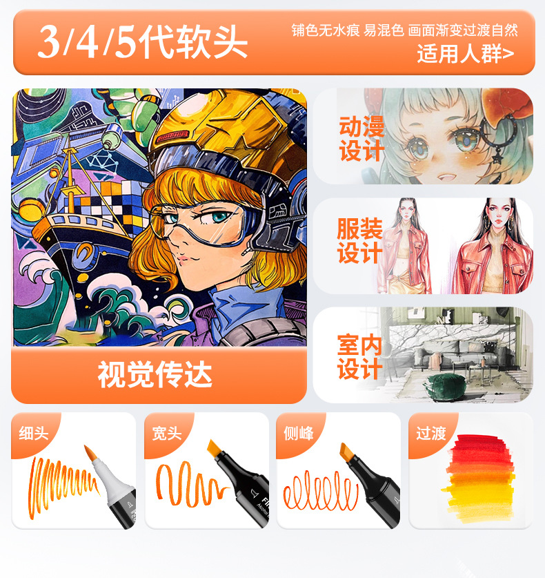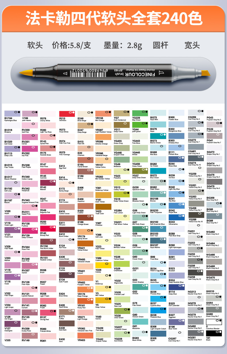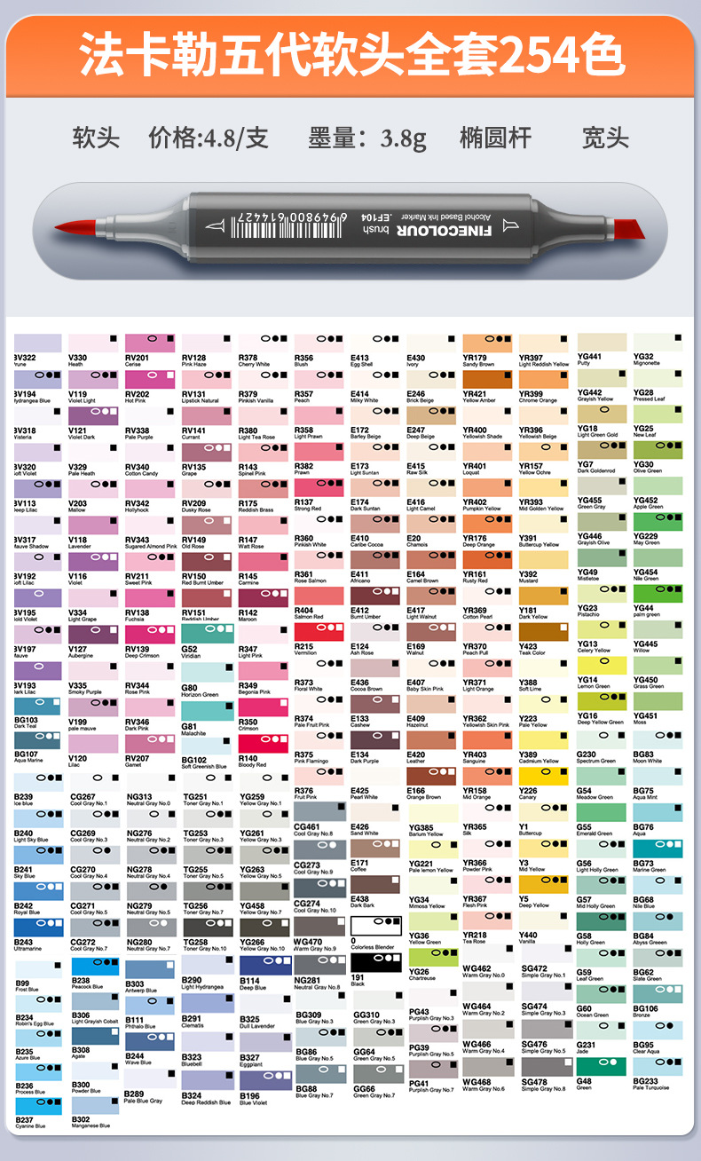 Fakal 마커 1236 세대 단일 선택 이중 알코올 유성 1/2/3/5/6 세대 마커