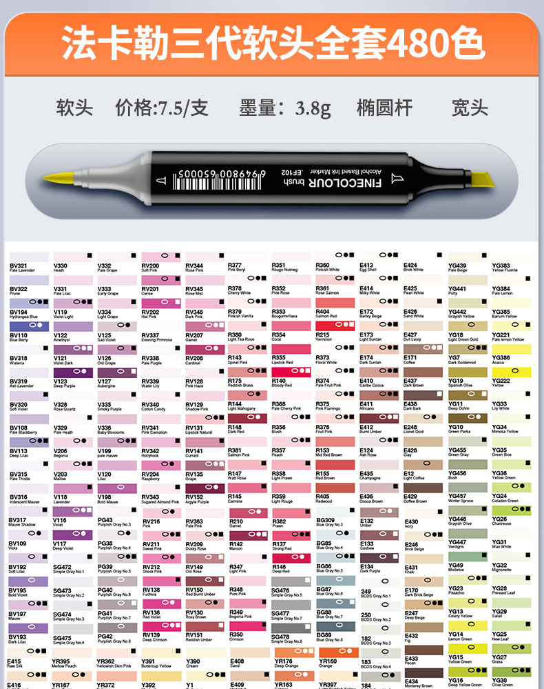 • 리필 잉크 단일 튜브 [유니버설 480색 색상 비고]