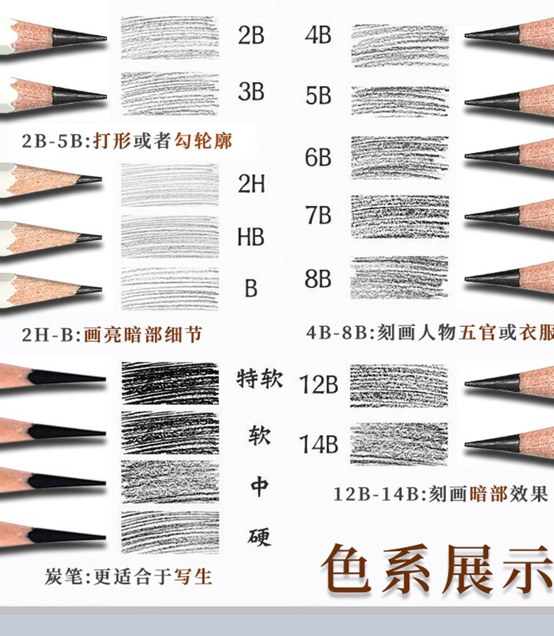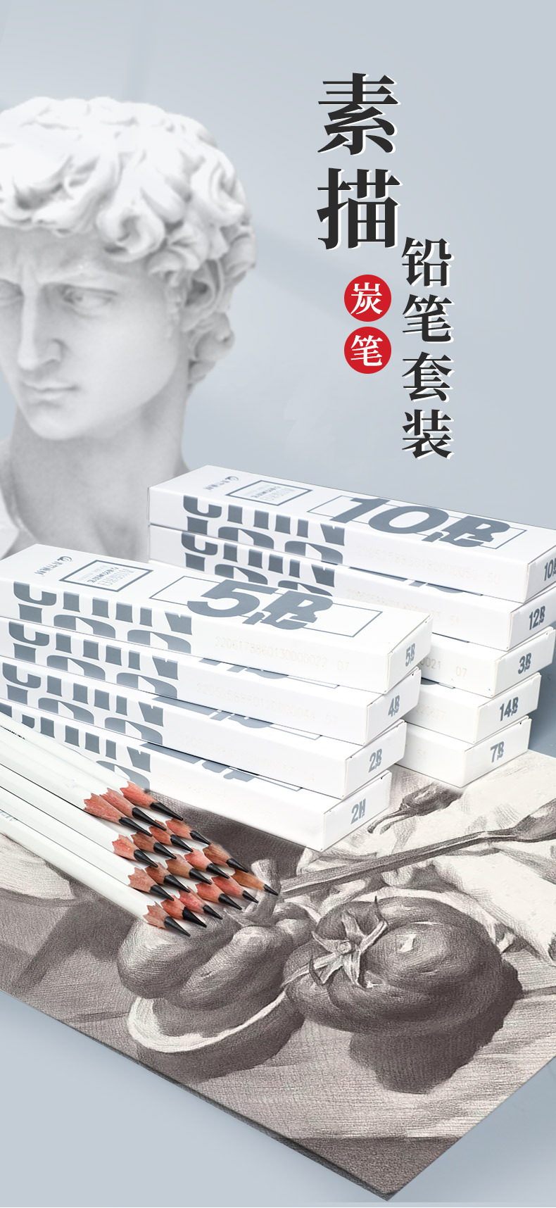 대나무 스트리머 화이트 스케치 연필 2B4B14B 카본 펜 세트 초보자 그림 HB6b8b10b12b 연필