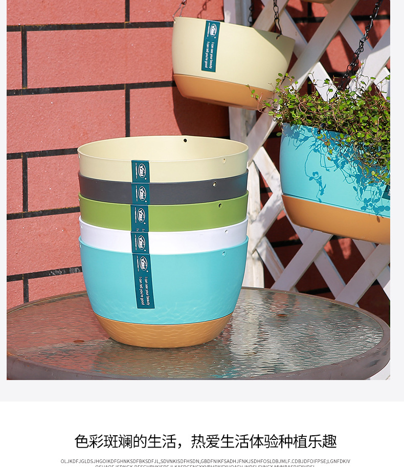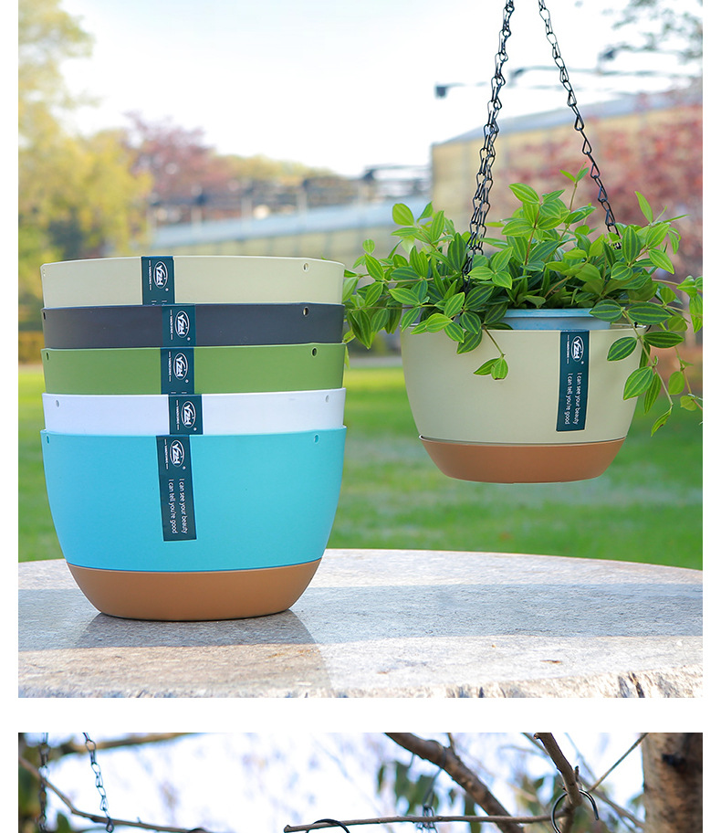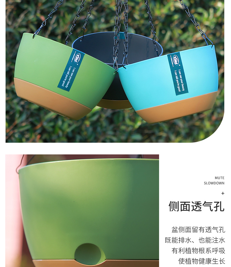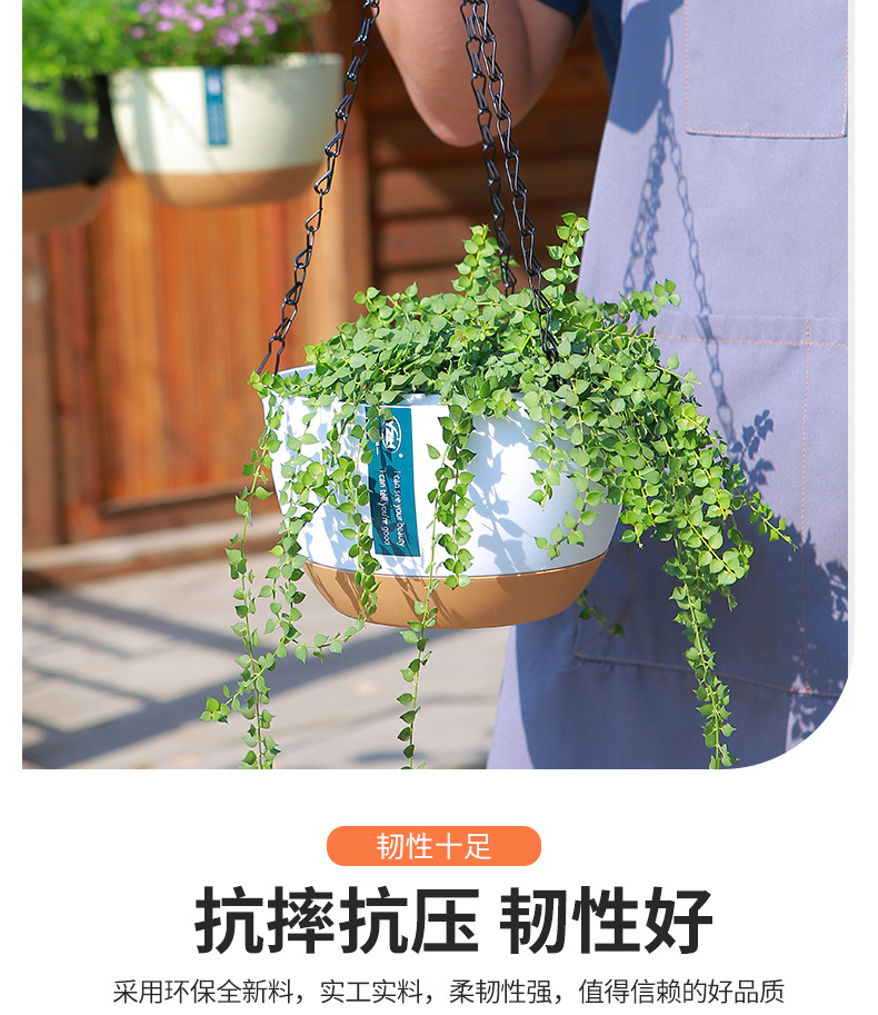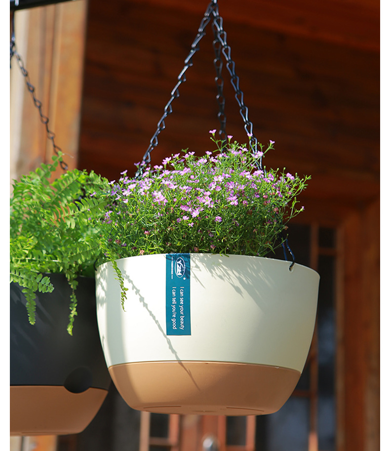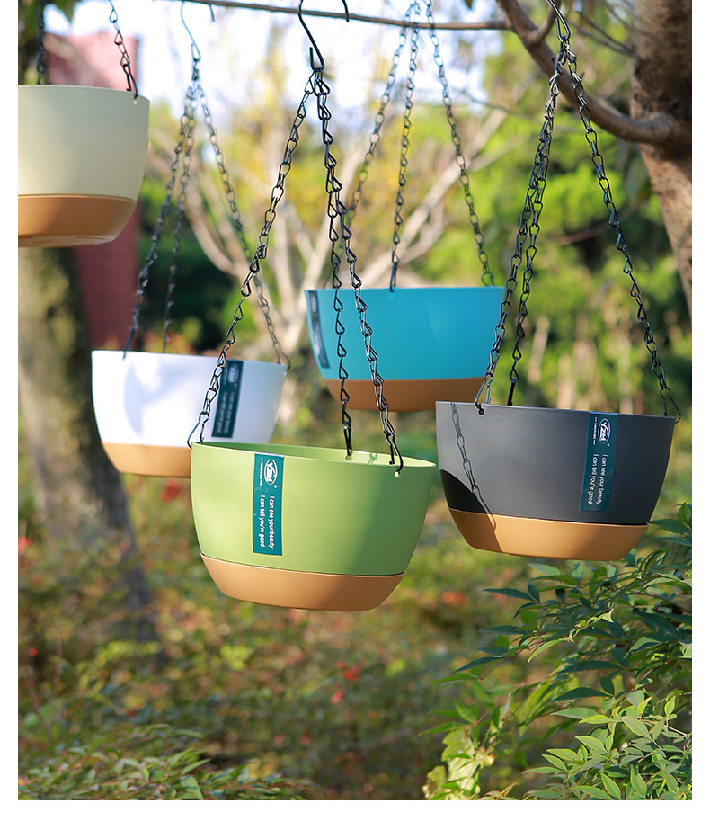 뜨거운 판매 교수형 바구니 꽃 냄비 교수형 낚시 즙이 많은 꽃 냄비 녹색 딜 녹색 식물 더블 체인 자동 물 흡수 플라스틱 꽃 냄비스토어 가기