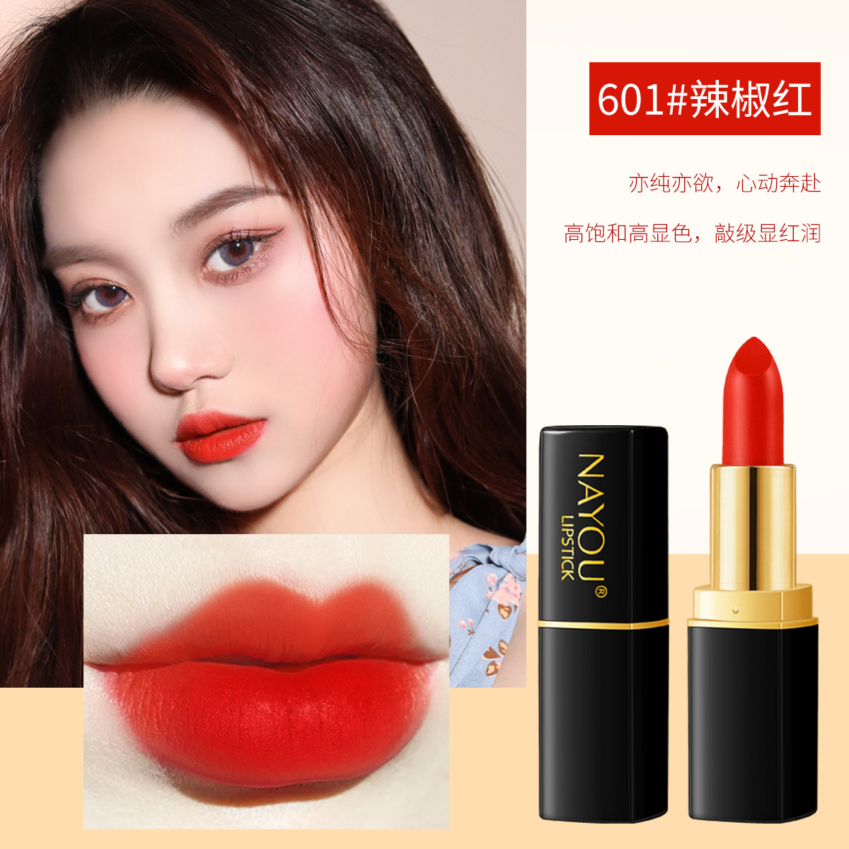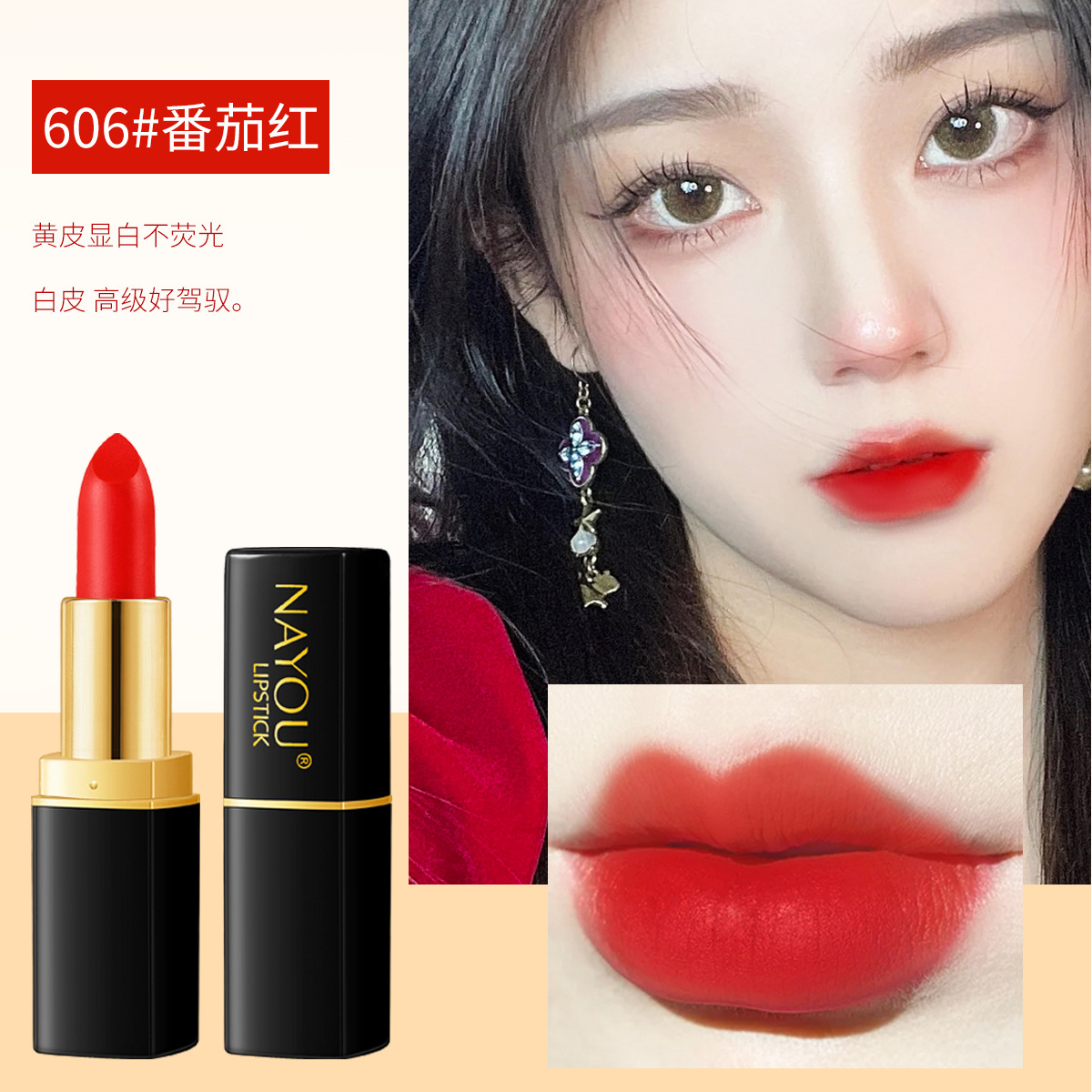 틱톡 동일 스타일 나유 리틀 블랙 튜브 립스틱, 가볍고 촉촉하며 컵에 묻어나지 않고 방수 및 땀 방지 기능이 있는 학생용 립스틱