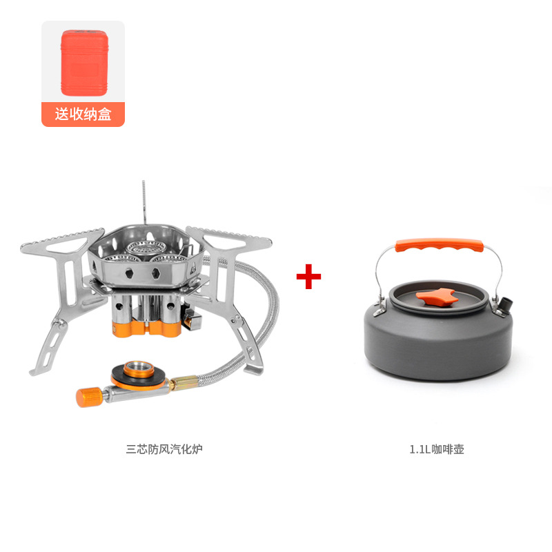 • 싱글 3 코어 버너 + 1.1L 커피 포트 (오렌지 핸들)