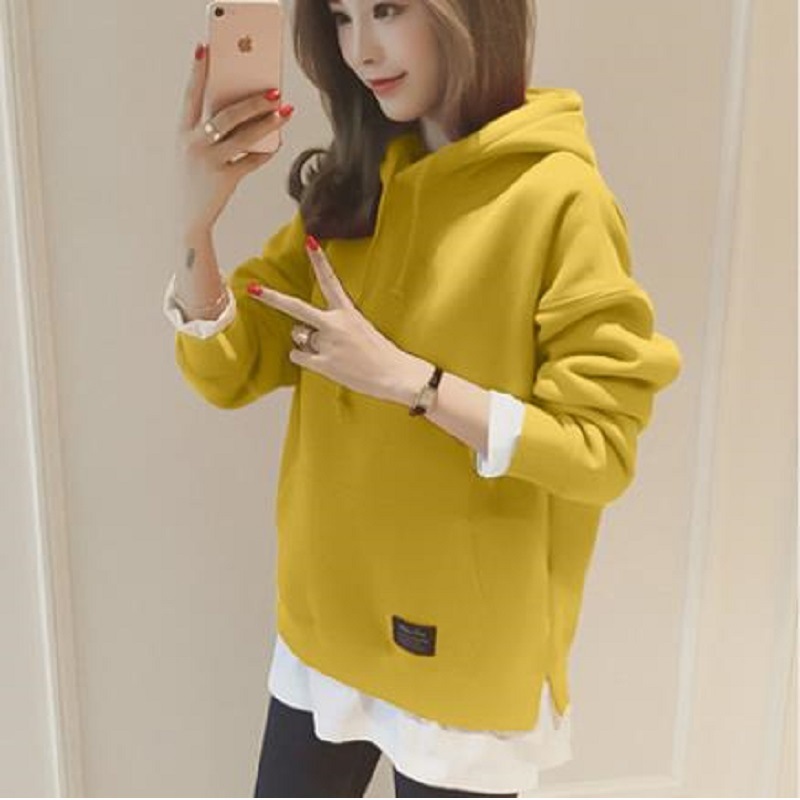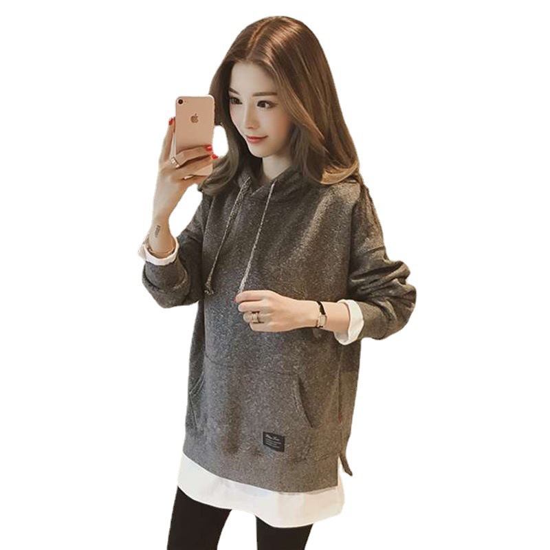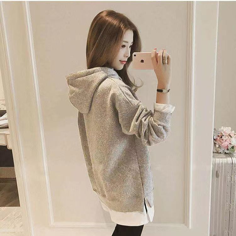 기모 두꺼운 느슨한 라운드 넥 가짜 투피스 긴팔 스웨터 여성의 한국 스타일 대외 무역 재킷 코트 플러스 사이즈 여성 의류스토어 가기