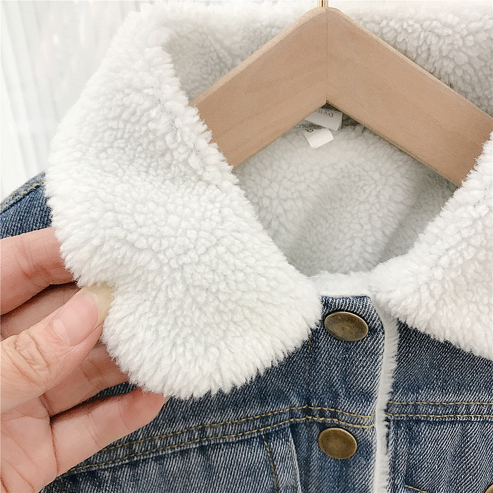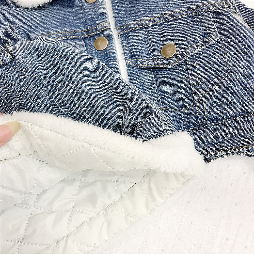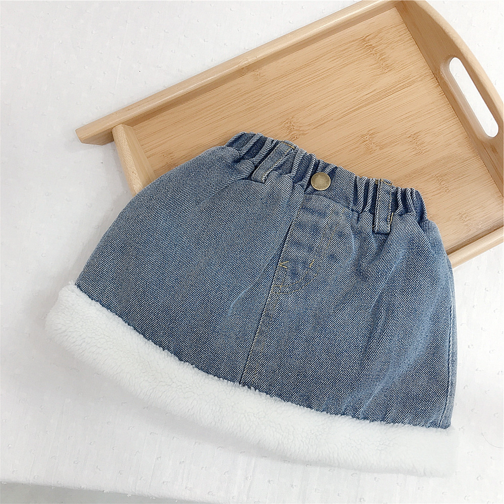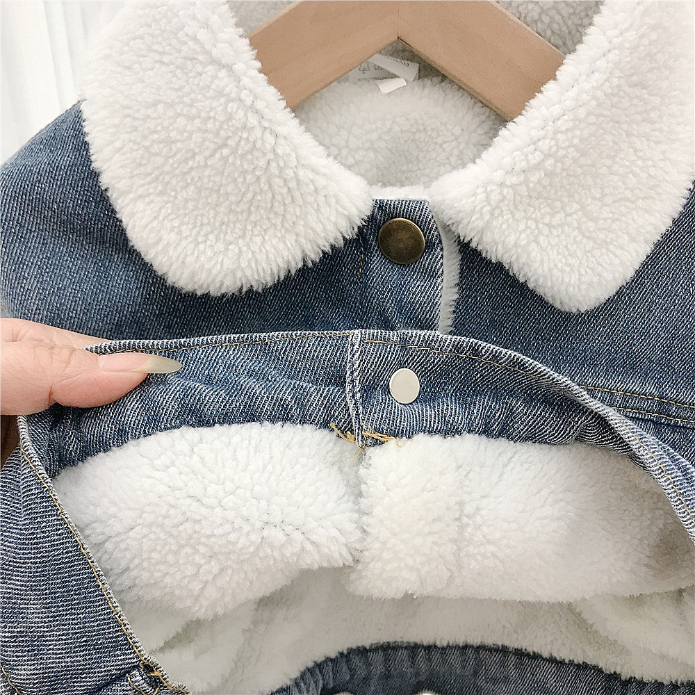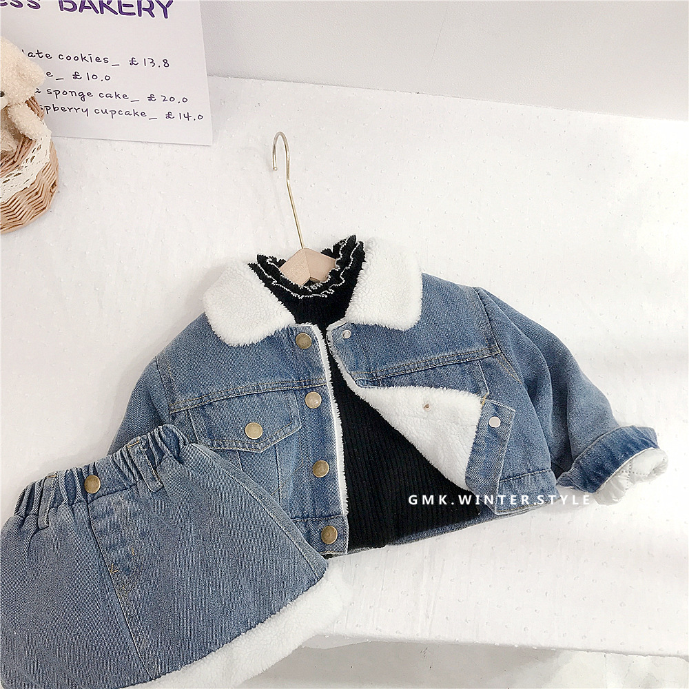 소녀의 데님 캐시미어 세트 서양식 겨울 의류 소녀의 아기 퀼트 오버 스커트 어린이 캐시미어 데님 두꺼운 코트스토어 가기