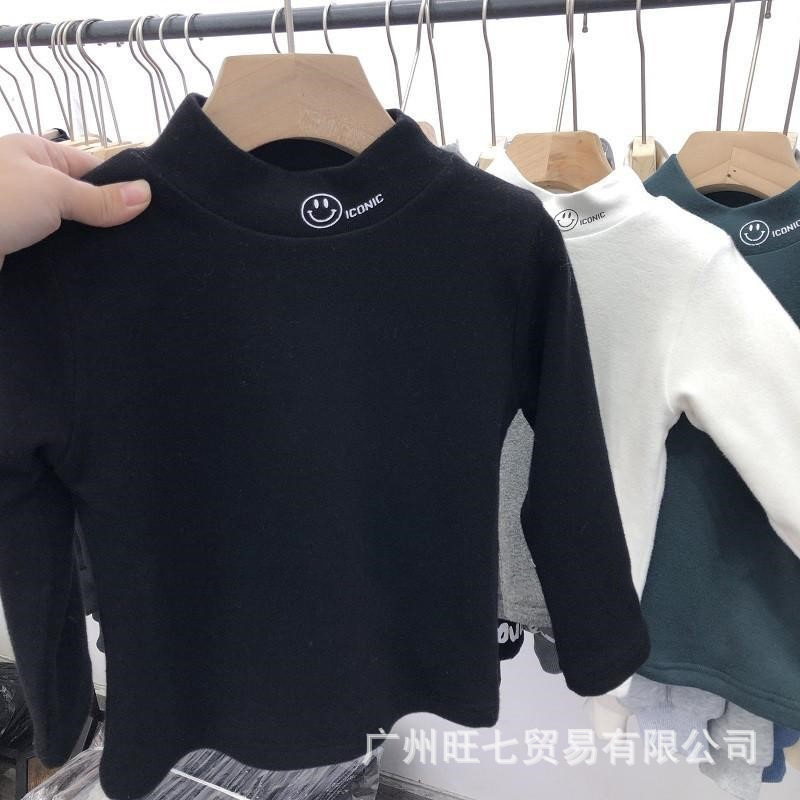 독일 벨벳 어린이 모든 매치 하이 칼라 따뜻한베이스 셔츠 가을과 겨울 아동복 재미 귀여운 어린이 긴팔 티셔츠 탑스토어 가기