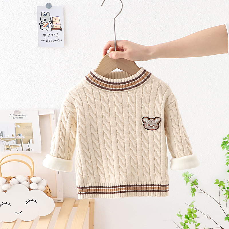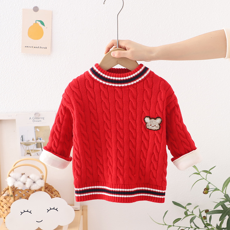 2022 가을과 겨울 새로운 어린이 스웨터 소년과 소녀 아기 기모 두꺼운 풀오버 스웨터스토어 가기