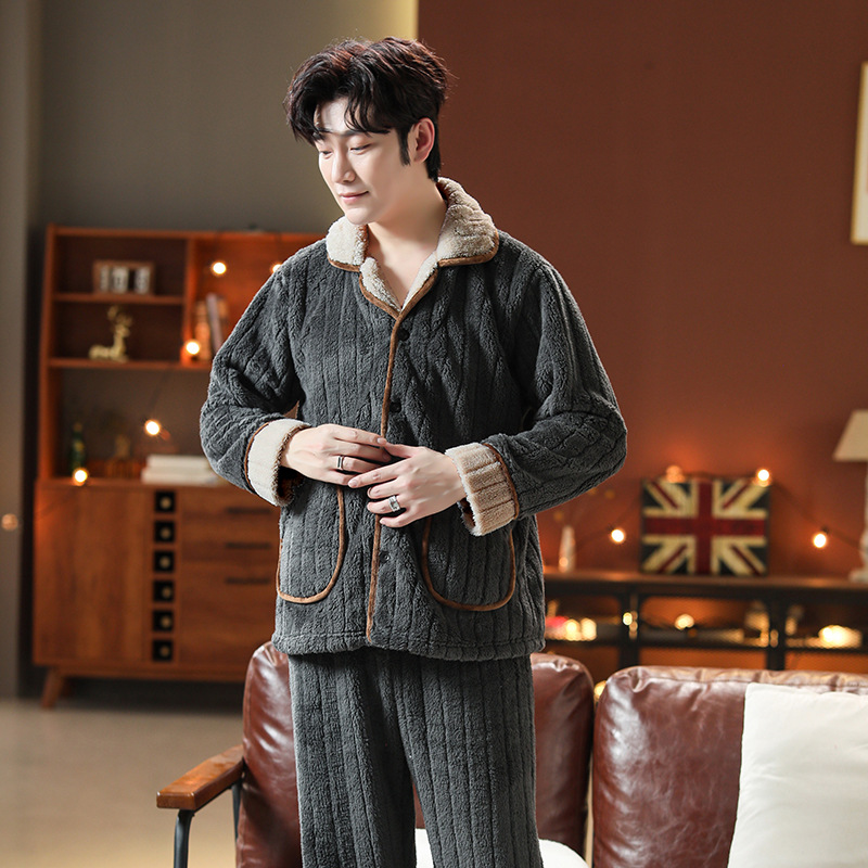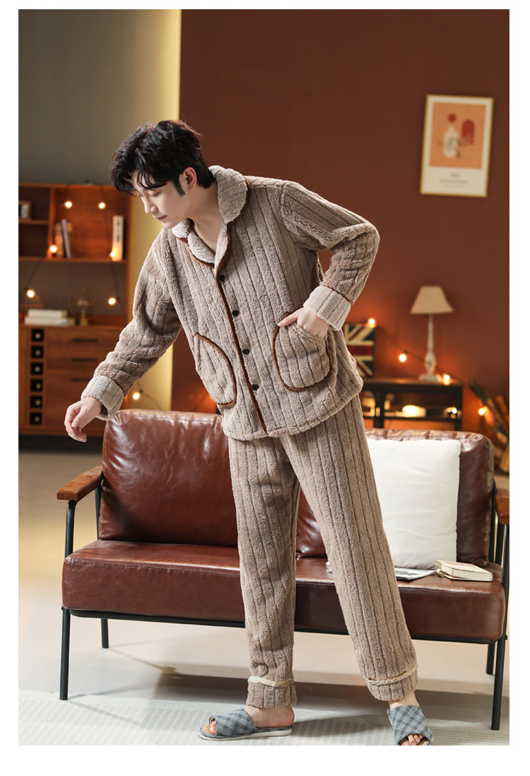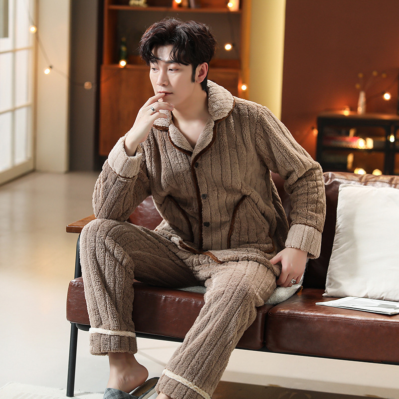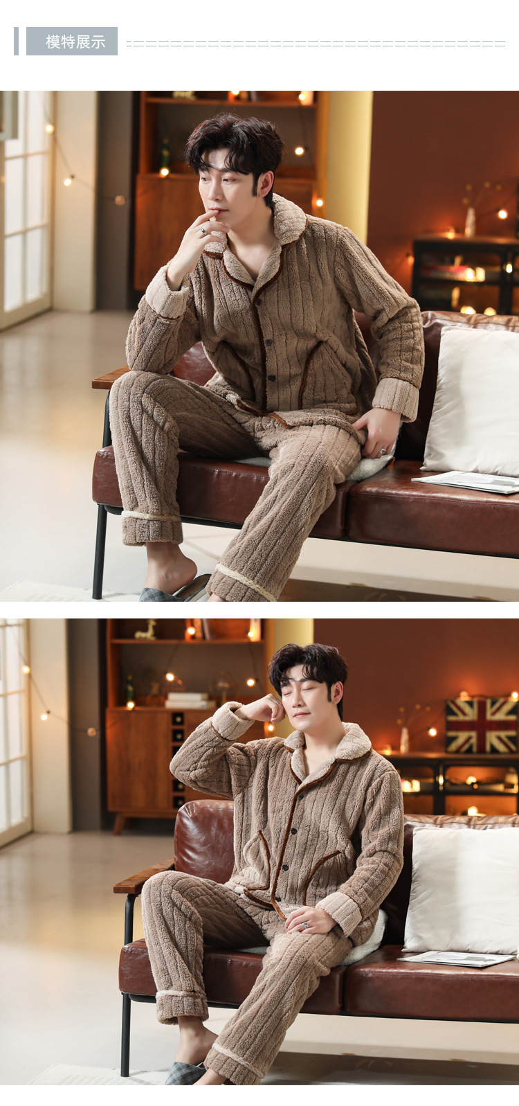 2023 신상품 겨울 남성 잠옷 플란넬 잠옷 따뜻한 산호 양털 잠옷은 집 밖에서 입을 수 있습니다 세트스토어 가기