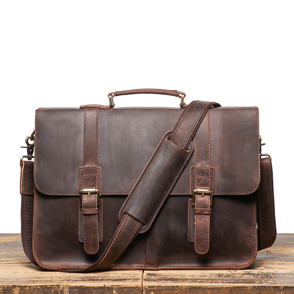 유럽과 미국 복고풍 핸드백 미친 말 가죽 서류 가방 남성용 소가죽 숄더 크로스 바디 백 대용량 정품 가죽 컴퓨터 가방스토어 가기