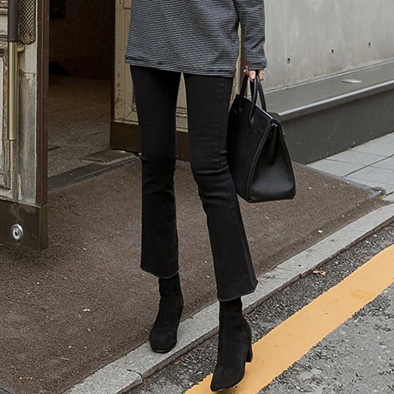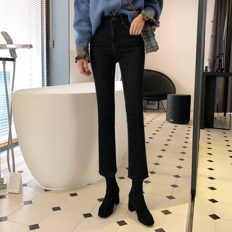 가을/겨울 기모 파이프 바지 여성 데님 플레어 팬츠 9 점 마이크로 하이 웨이스트 슬림 2023 new 블랙 518스토어 가기