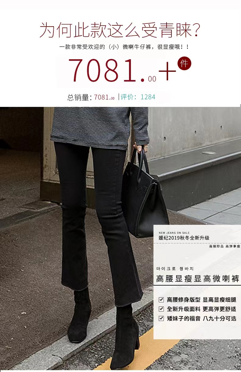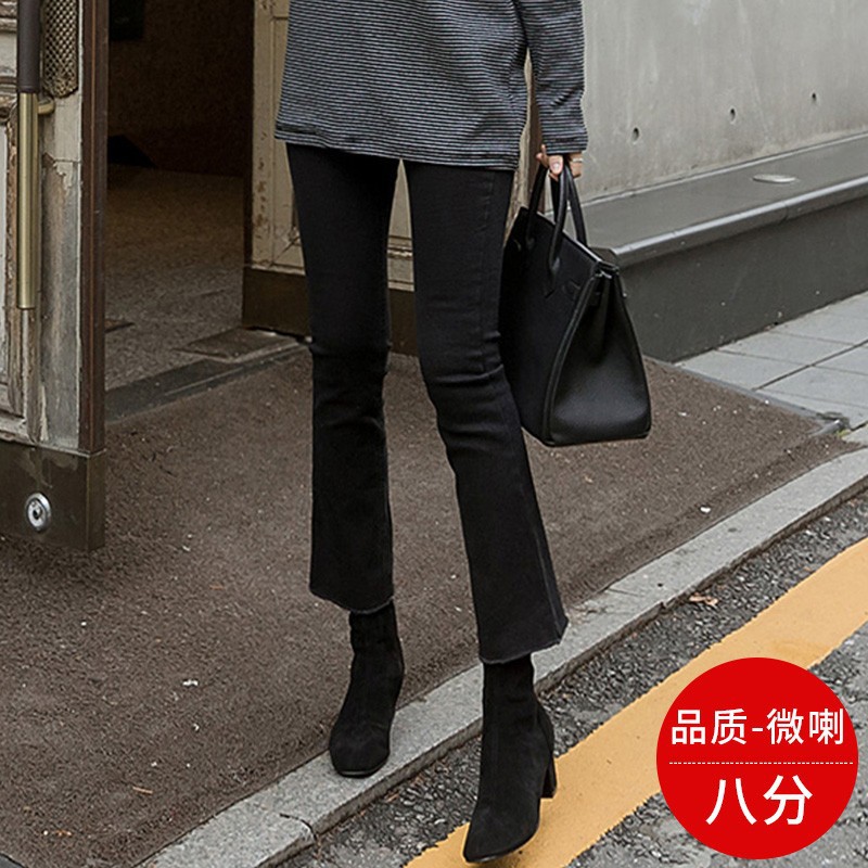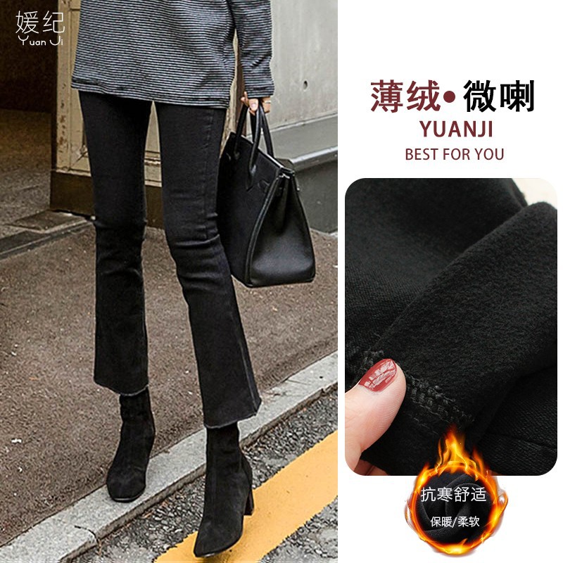 가을/겨울 기모 파이프 바지 여성 데님 플레어 팬츠 9 점 마이크로 하이 웨이스트 슬림 2023 new 블랙 518