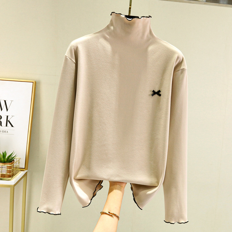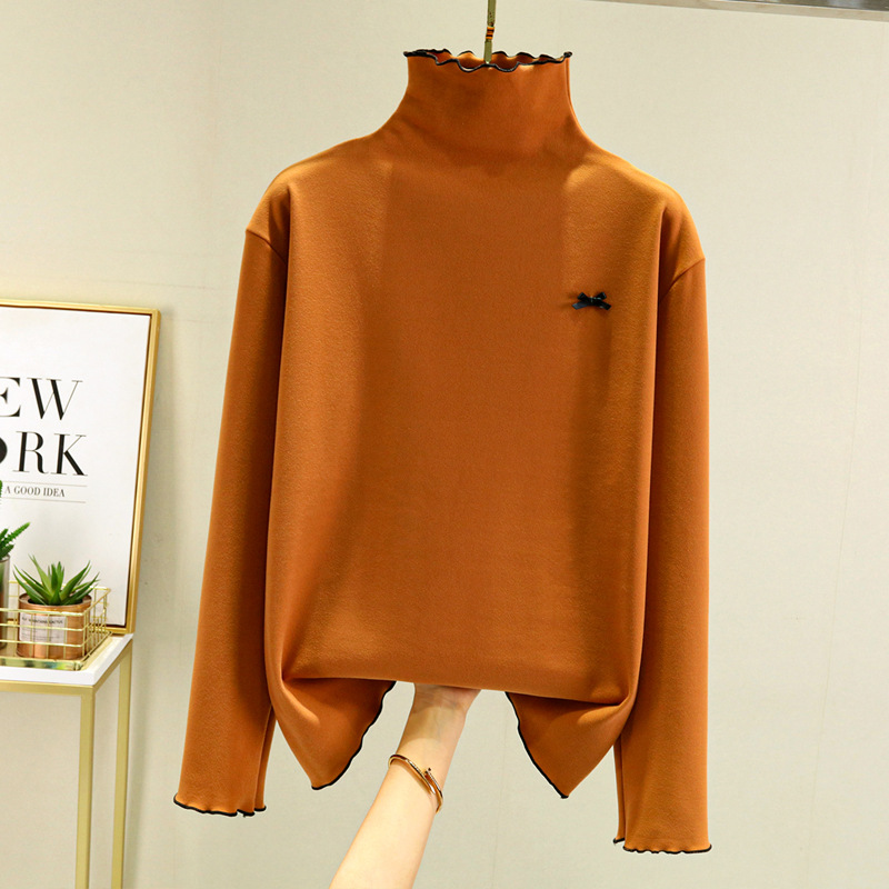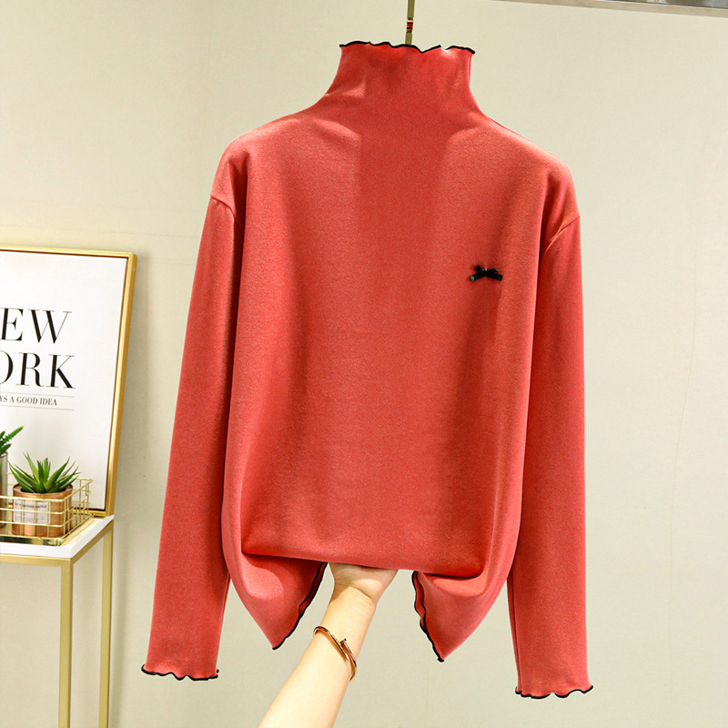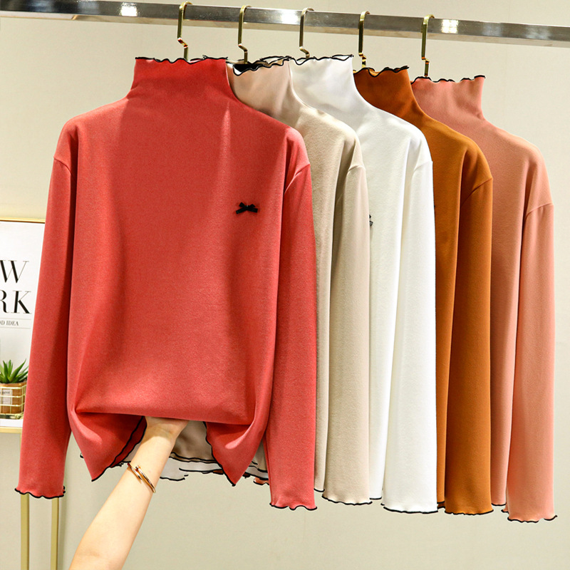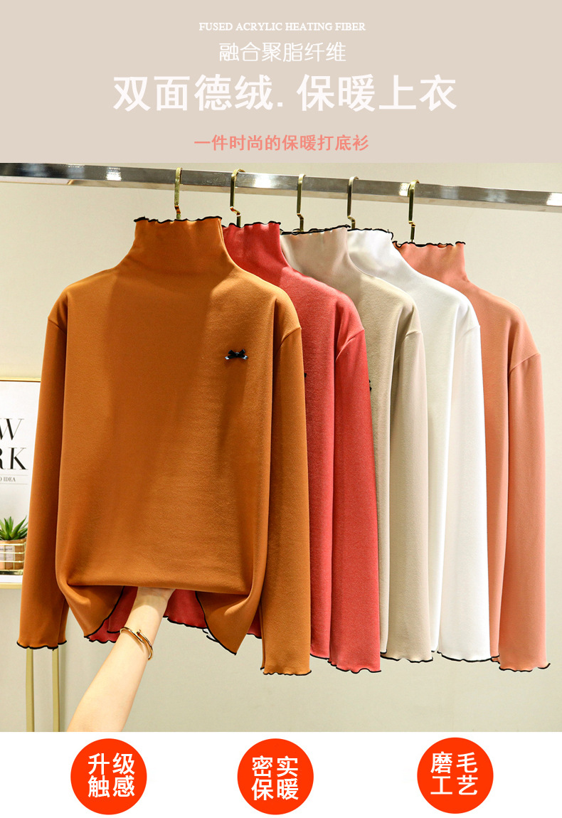 하이 칼라 베이스 셔츠 여성용 벨벳 긴팔 티셔츠 슬림핏 슬리밍 탑 가을과 겨울 두꺼운 기모 난방 따뜻한 옷