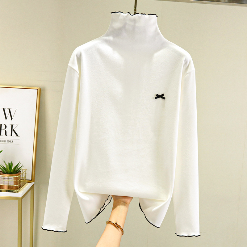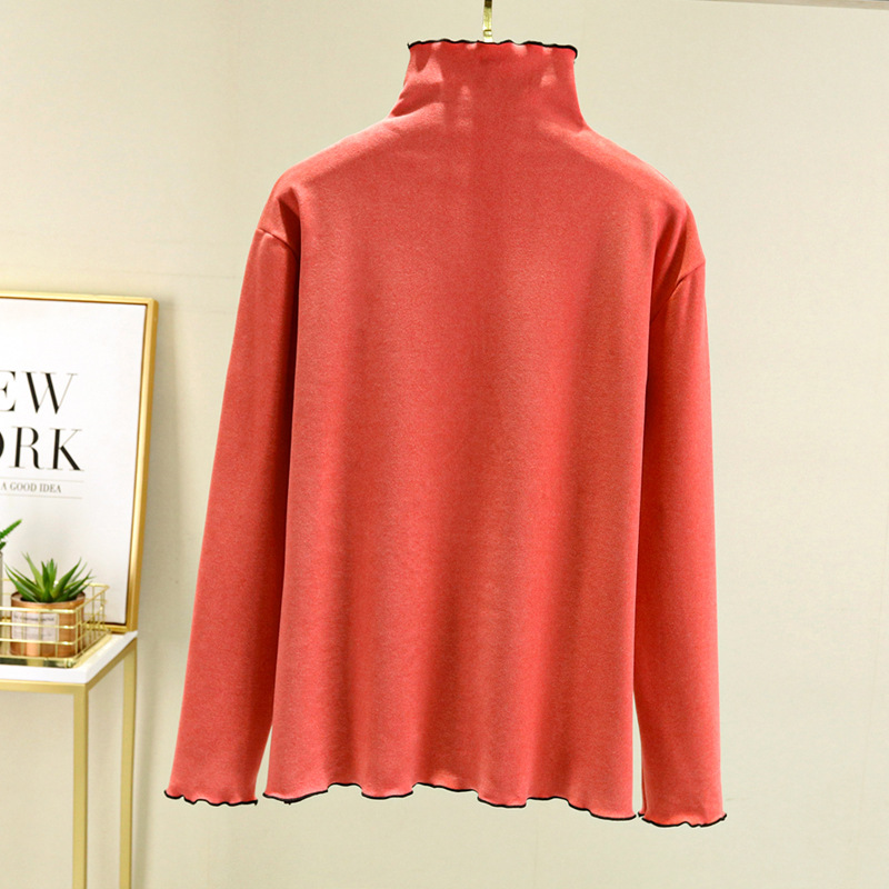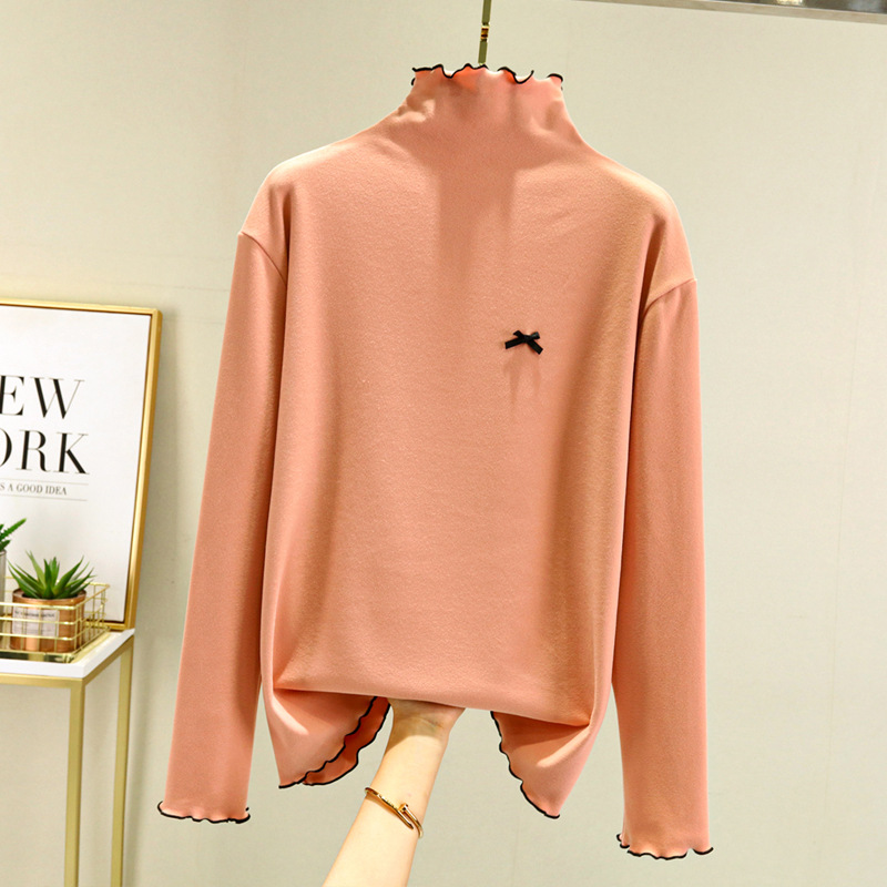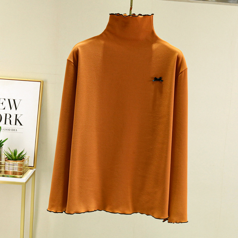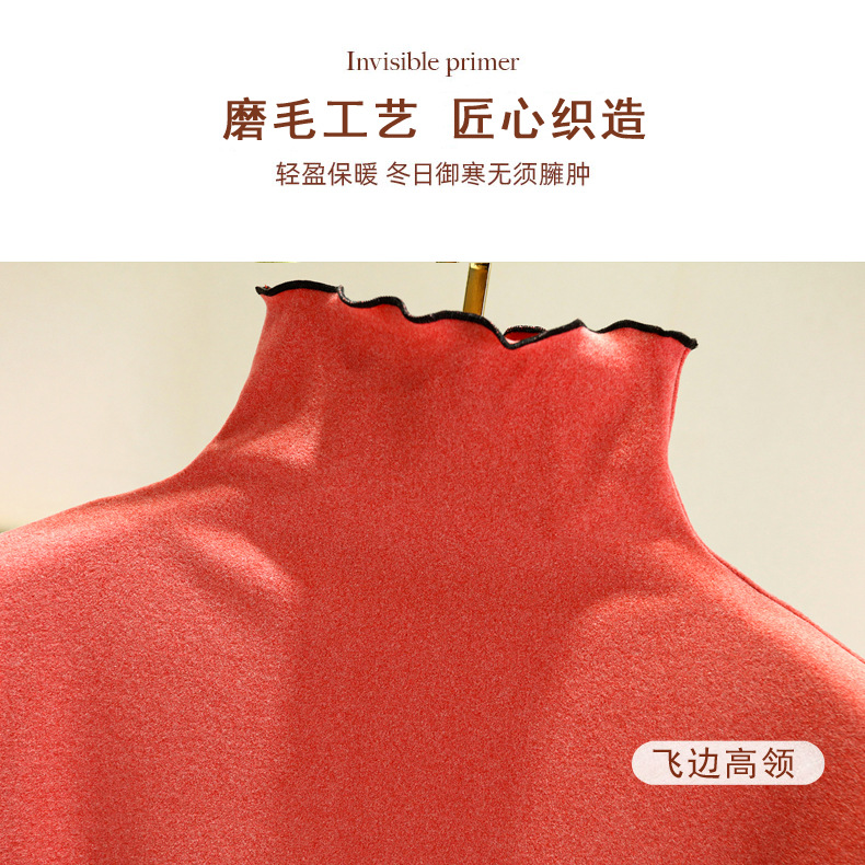 하이 칼라 베이스 셔츠 여성용 벨벳 긴팔 티셔츠 슬림핏 슬리밍 탑 가을과 겨울 두꺼운 기모 난방 따뜻한 옷