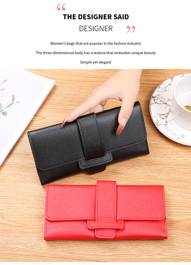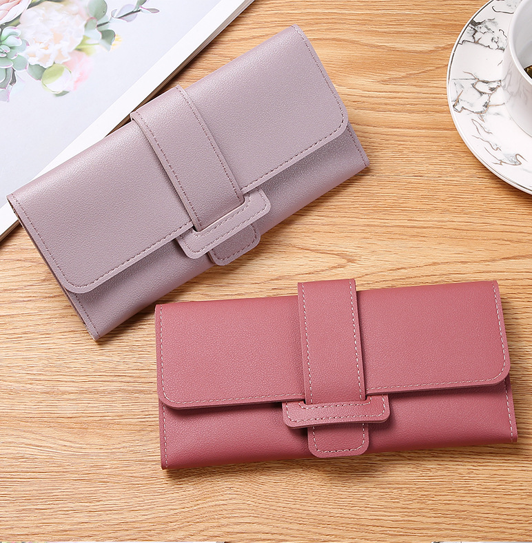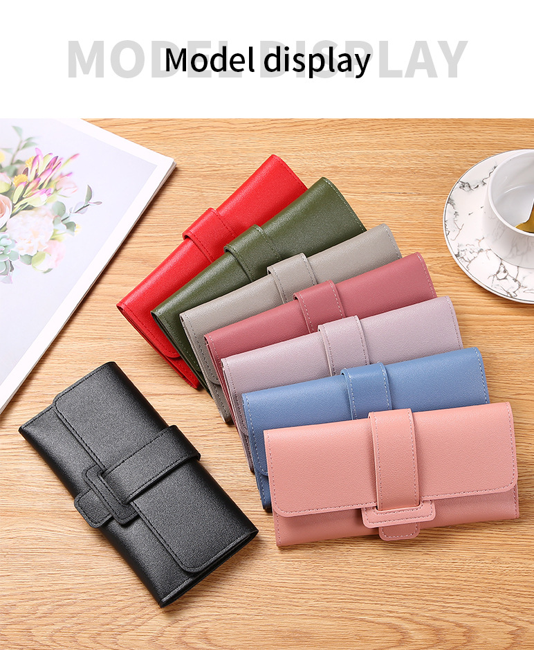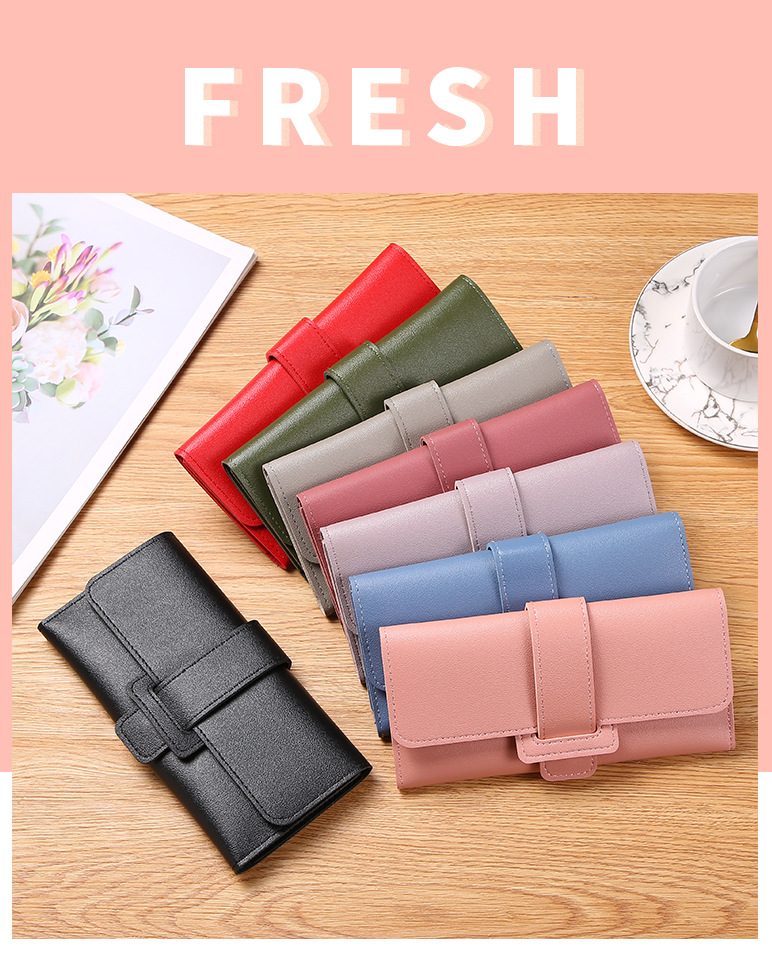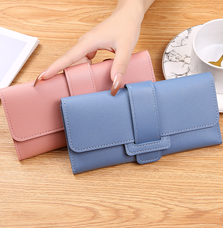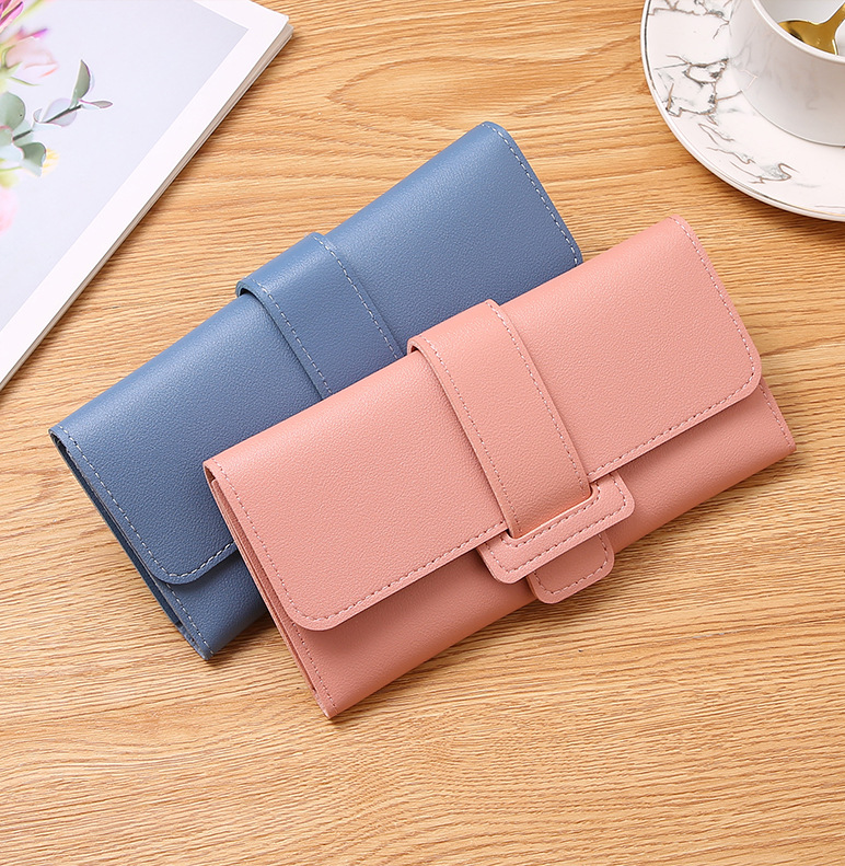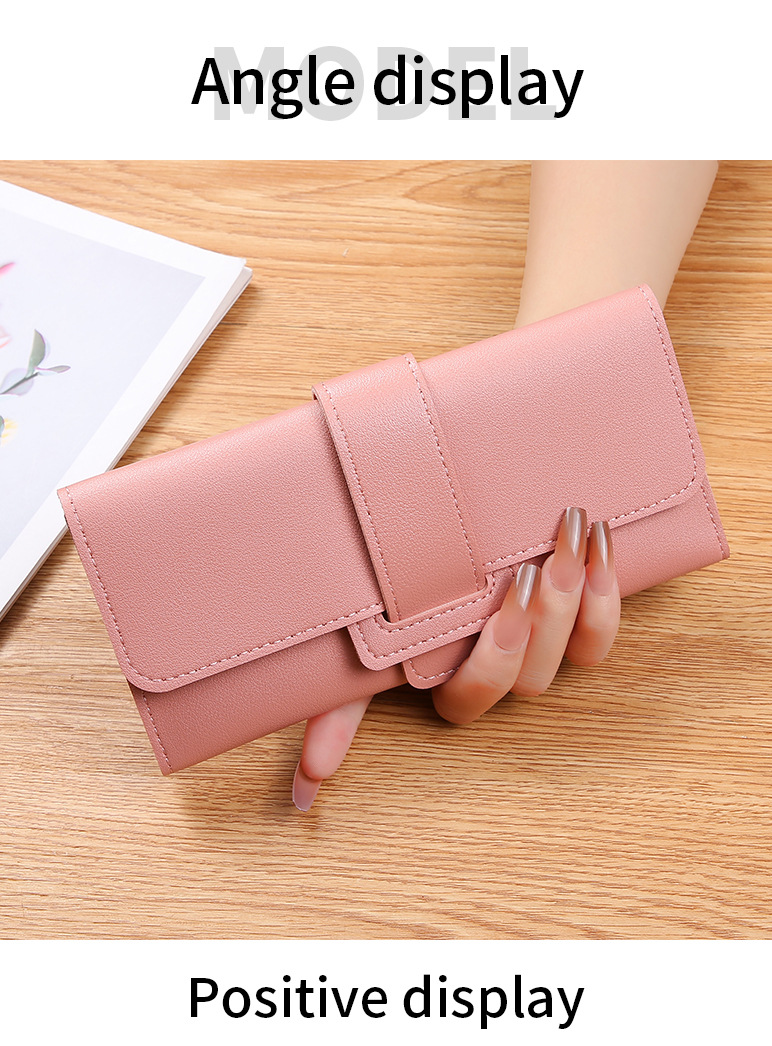 女士钱包女长款三折翻盖韩版小清新学生零钱位多功能搭扣皮夹外贸