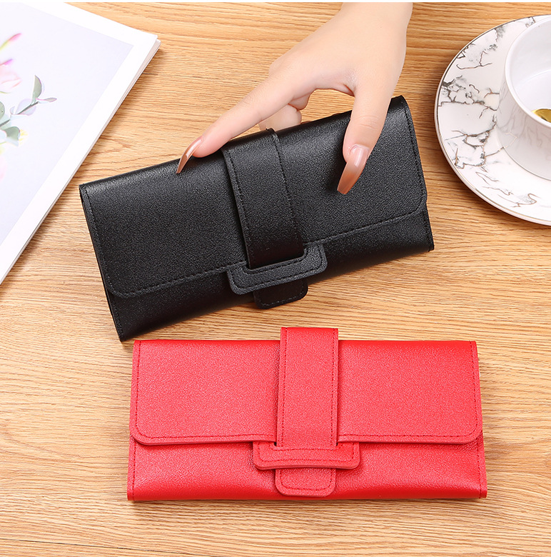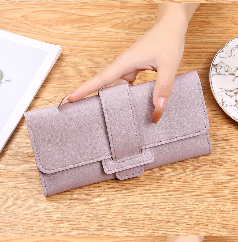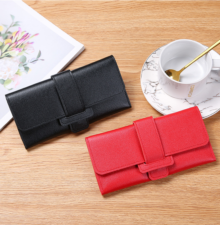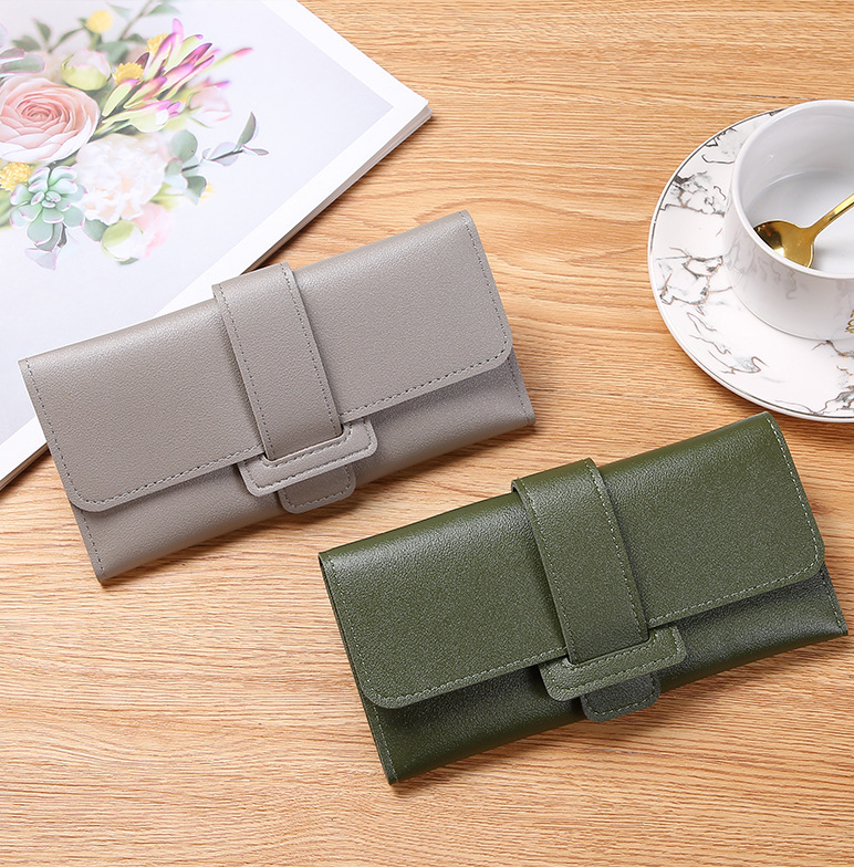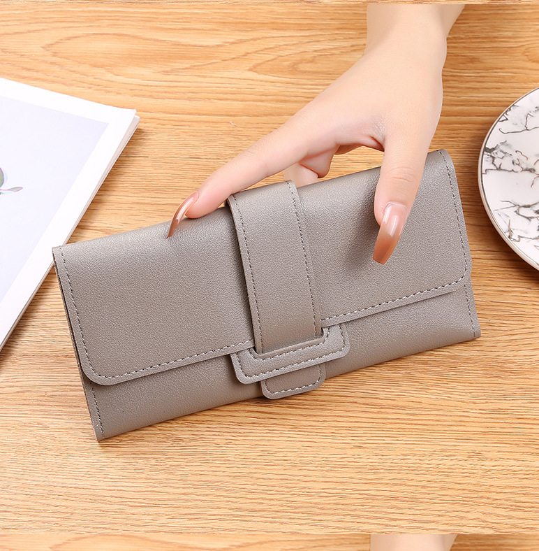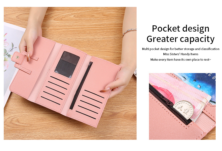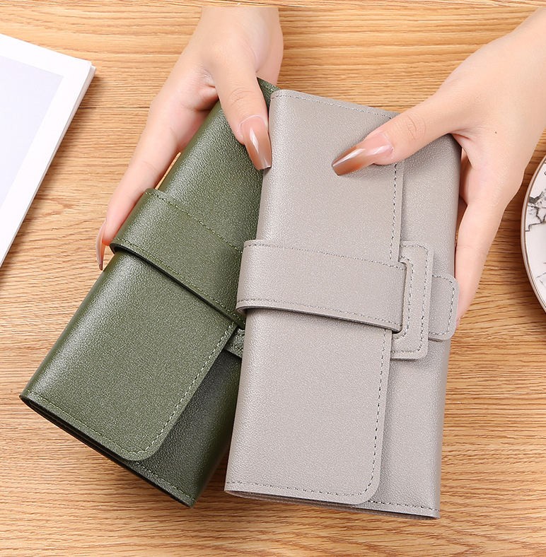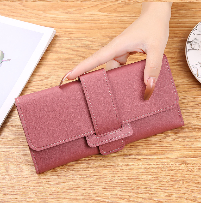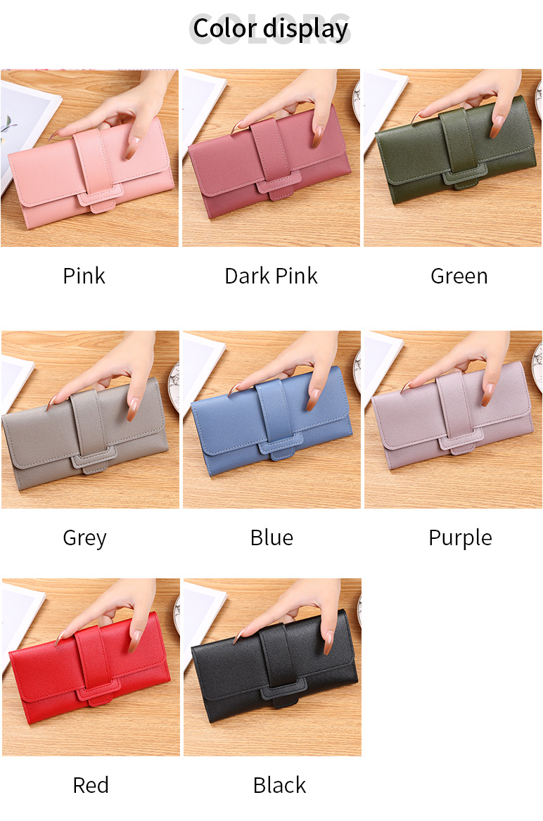 女士钱包女长款三折翻盖韩版小清新学生零钱位多功能搭扣皮夹外贸