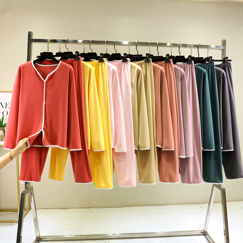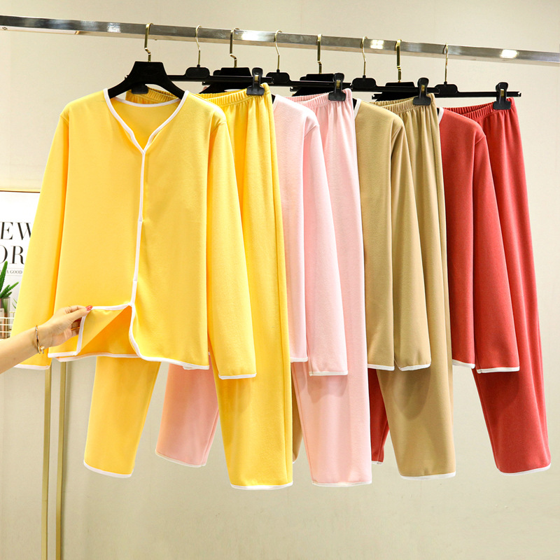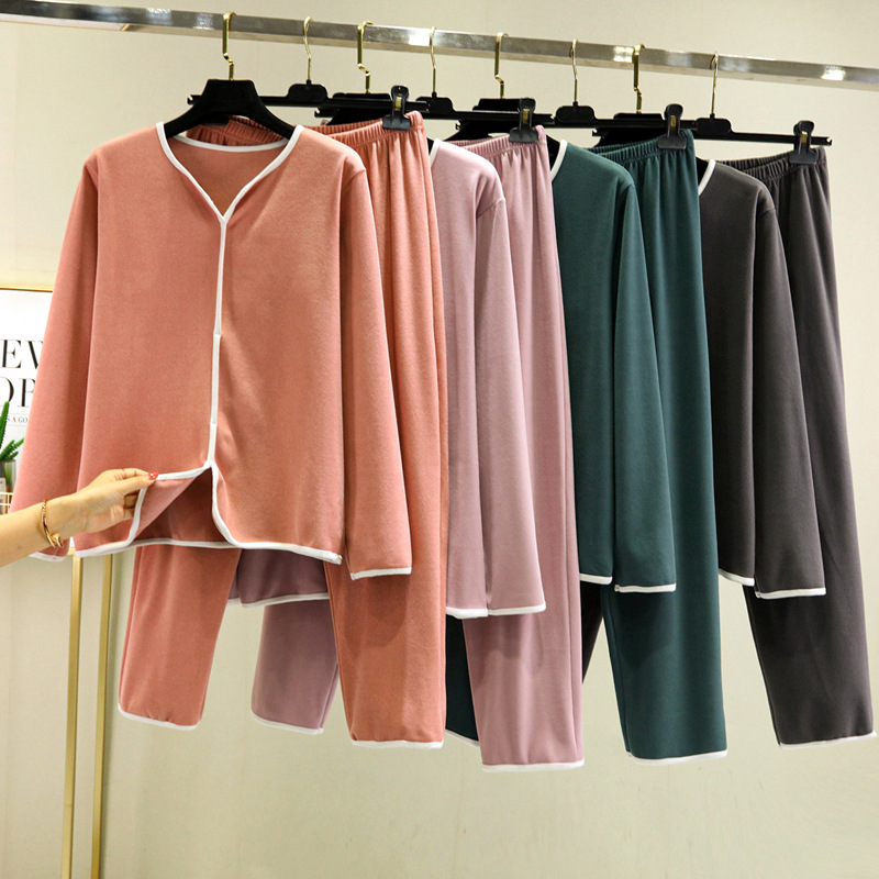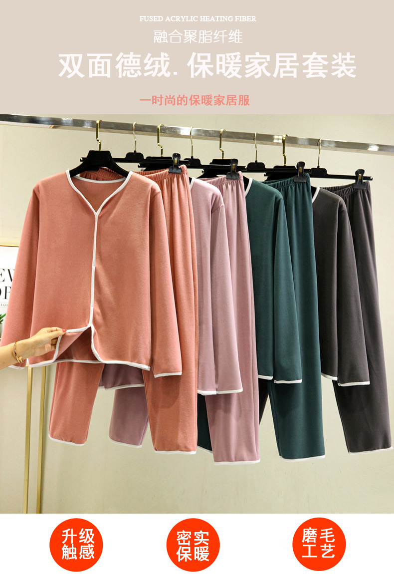 드 롱 홈 의류 세트 여자의 겨울 느슨한 캐주얼 홈 옷 두꺼운 기모 난방 긴 소매 V-넥 잠옷스토어 가기