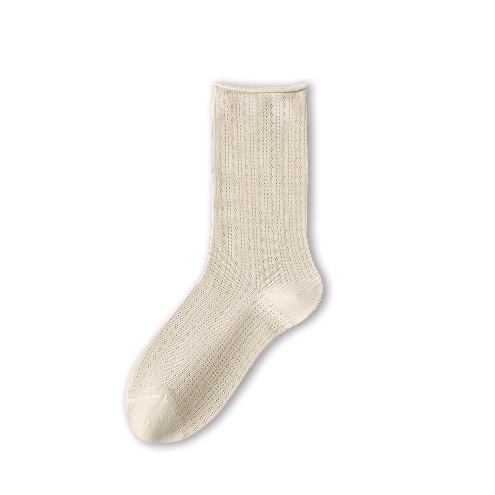 양말 여성 봄 여름 면 양말 초박형 봄 가을 흰색 여름 종아리 중간 스타킹 트렌디 파일 양말 메쉬 감금 트렌드