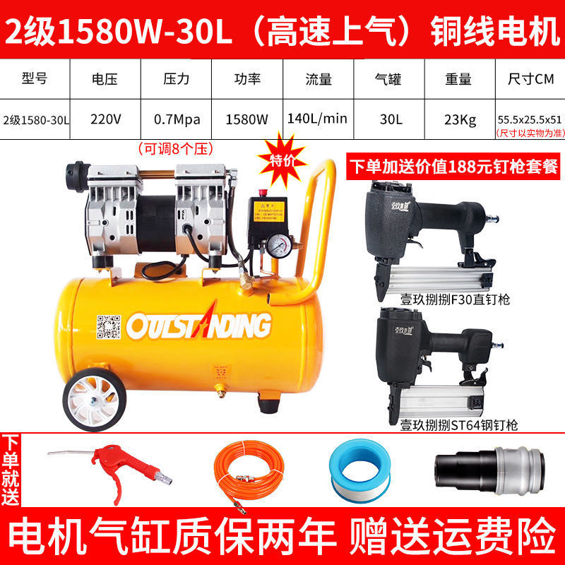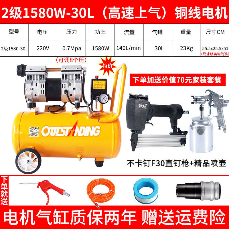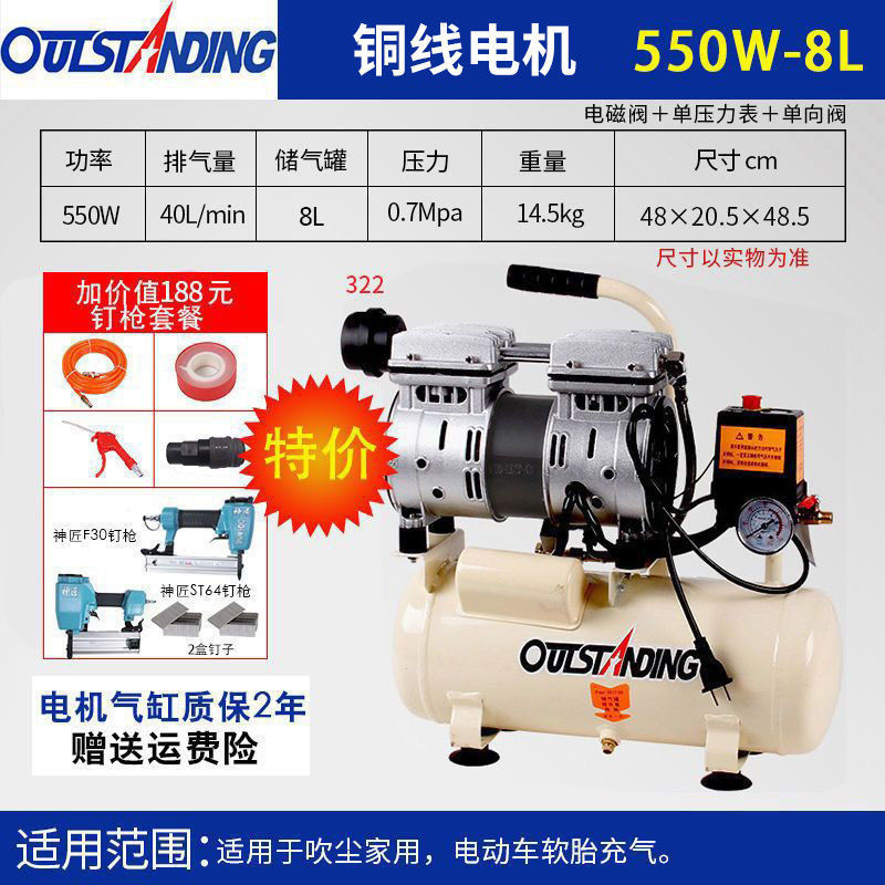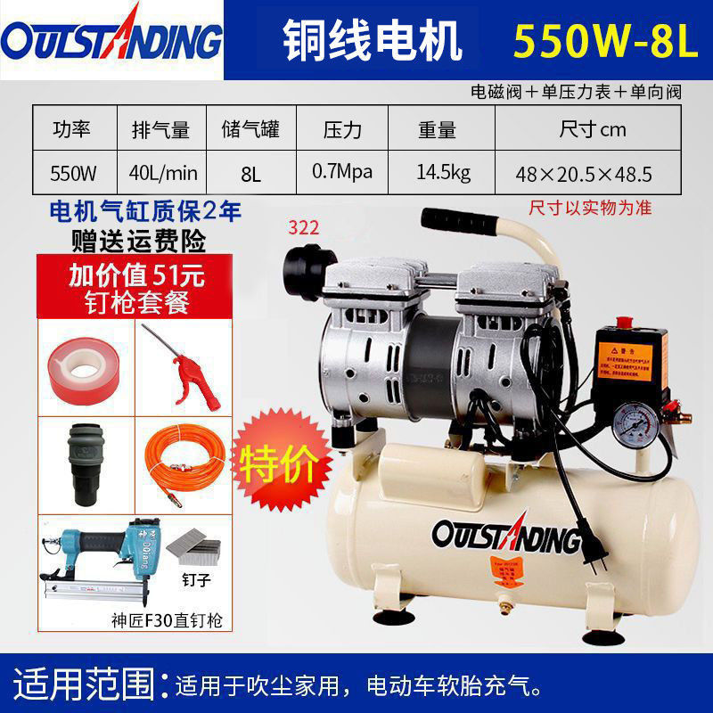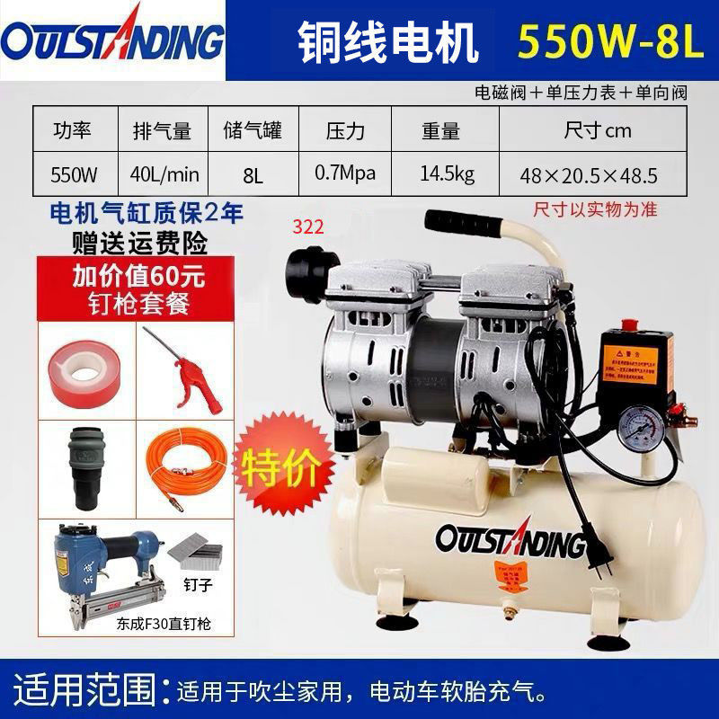 . 에어펌프 공기압축기 소형 고압 공기압축기 오일 프리 무소음 가정용 220 목공 공기펌프 압축