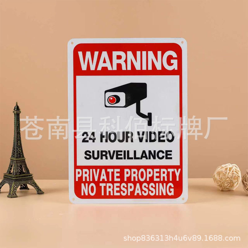 알루미늄 반사 표면 24 시간 모니터링 표시 아마존 영어 독일어 표지판 영역 모니터링 경고 표시