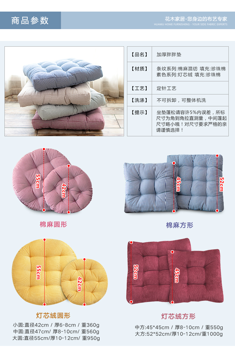 도매 초대형 두꺼운 스트라이프 쿠션 현대 간단한 원형 식당 의자 매트 다다미 바닥 매트 사계절 따뜻한 컴퓨터