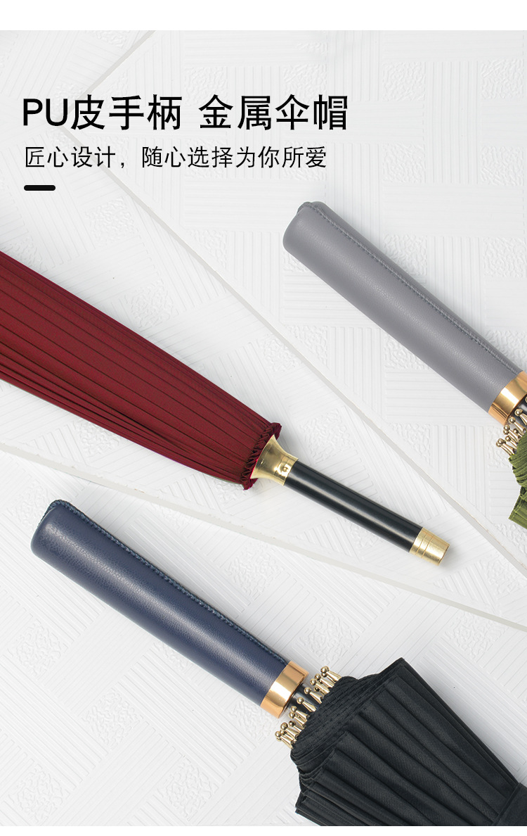 24본 긴 손잡이 자동 우산 남성용 우산 대형 강화 방풍 우산 두꺼운 비즈니스 우산 로고 인쇄 광고 우산