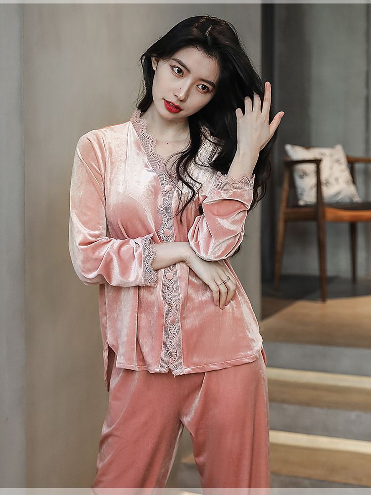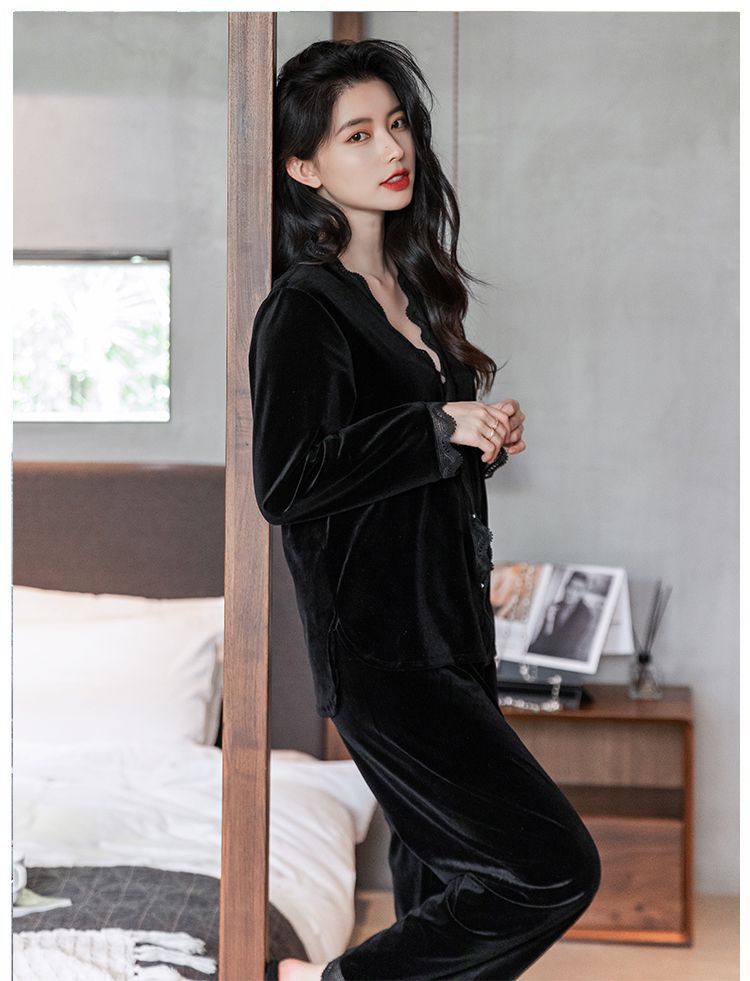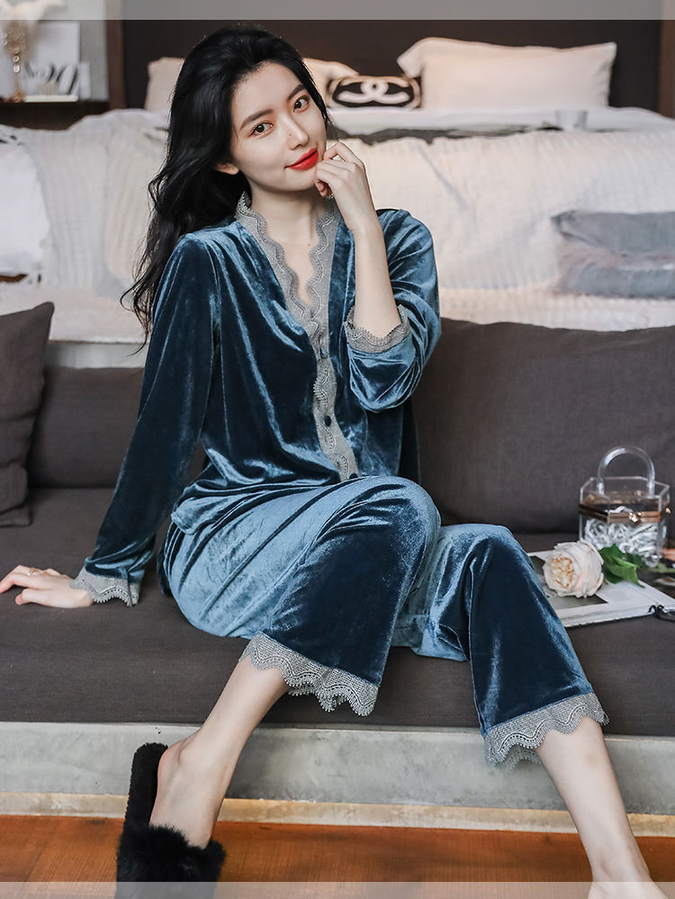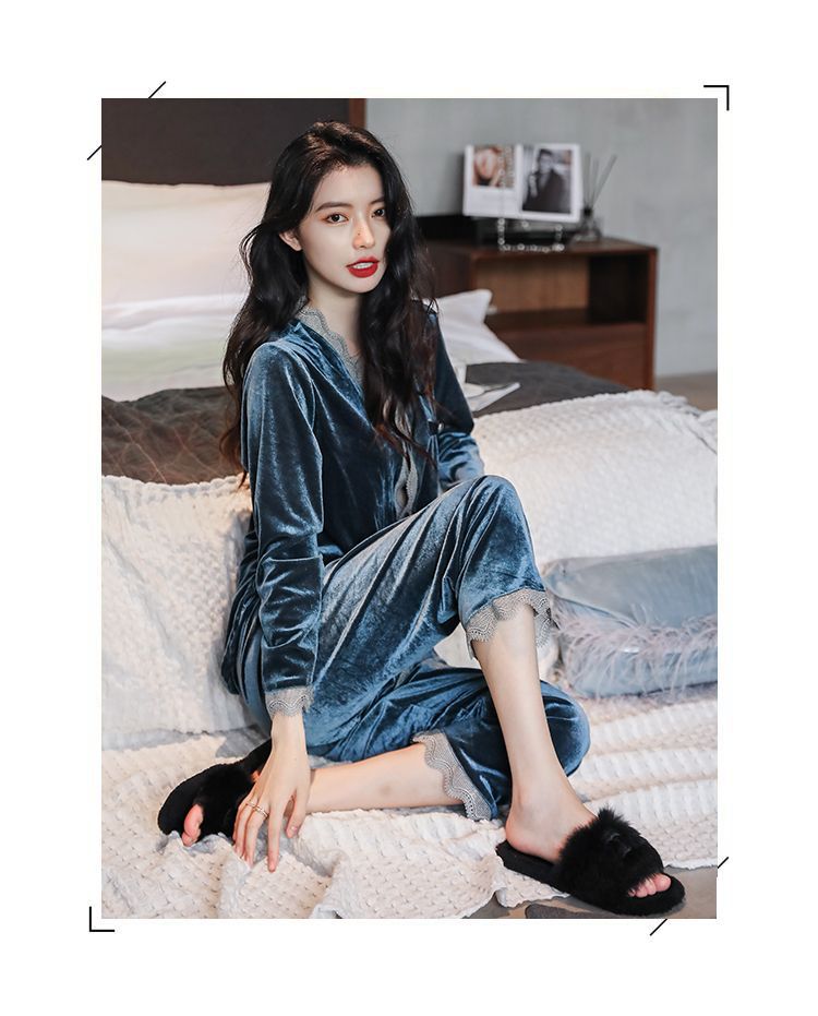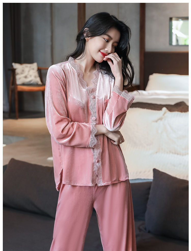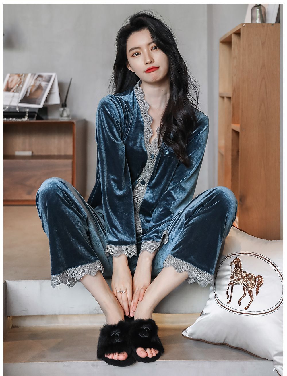 여성용 잠옷 가을 겨울 2022 신상 긴팔 가디건 세트 봄 벨벳 레이스 홈웨어 편안한 실내복