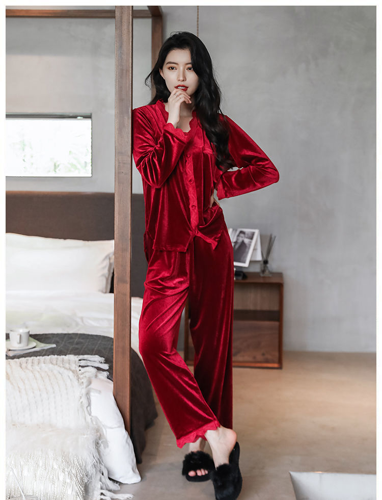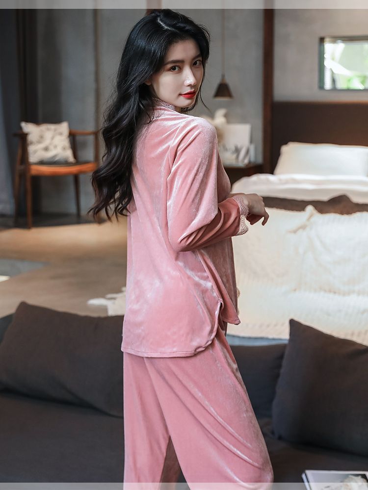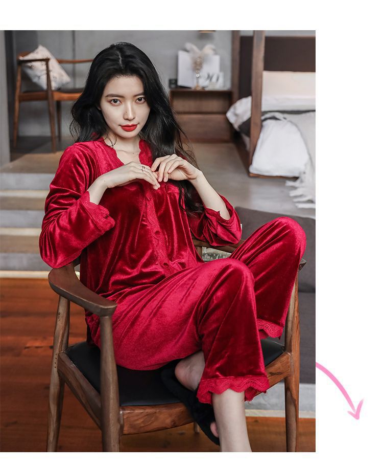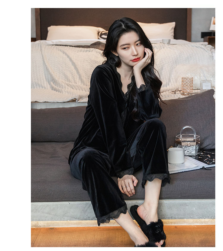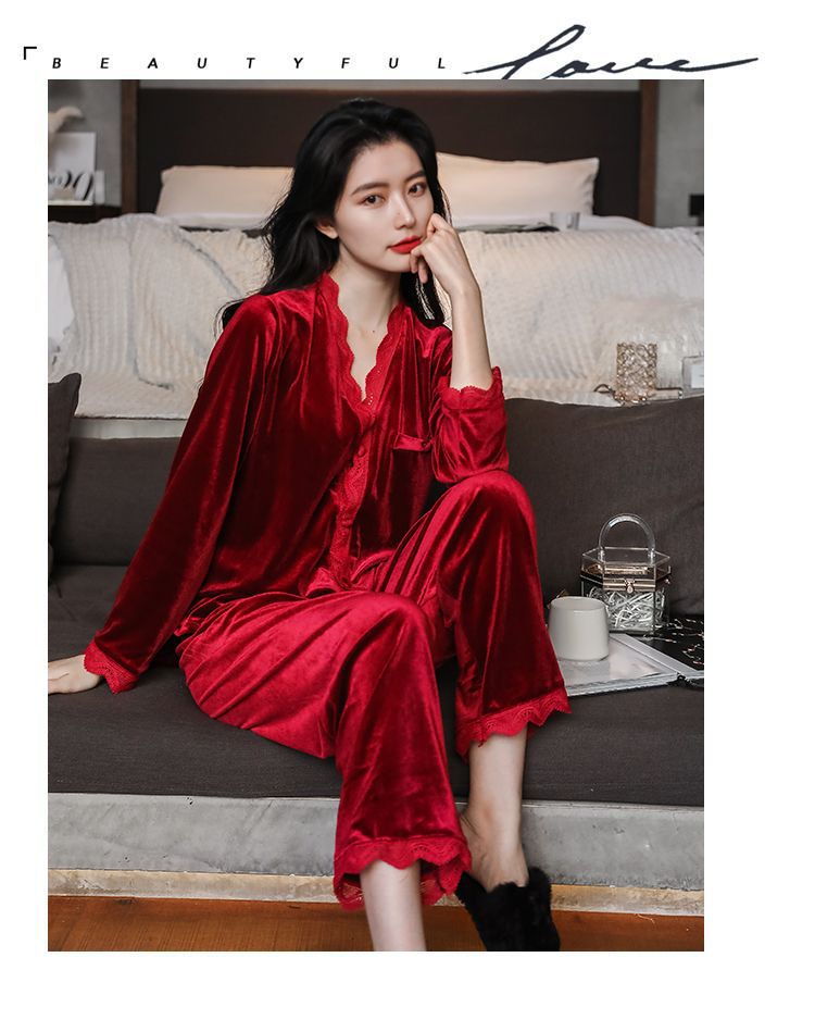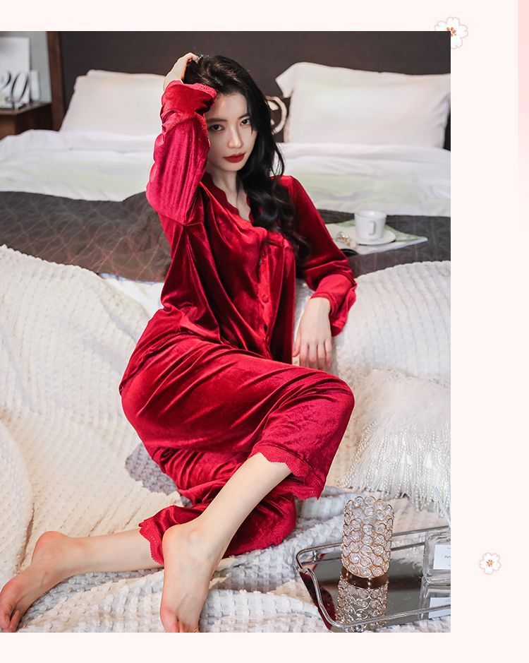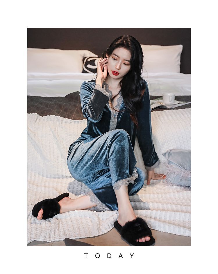 여성용 잠옷 가을 겨울 2022 신상 긴팔 가디건 세트 봄 벨벳 레이스 홈웨어 편안한 실내복