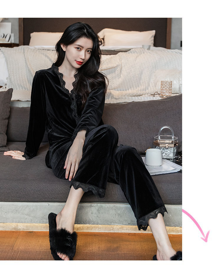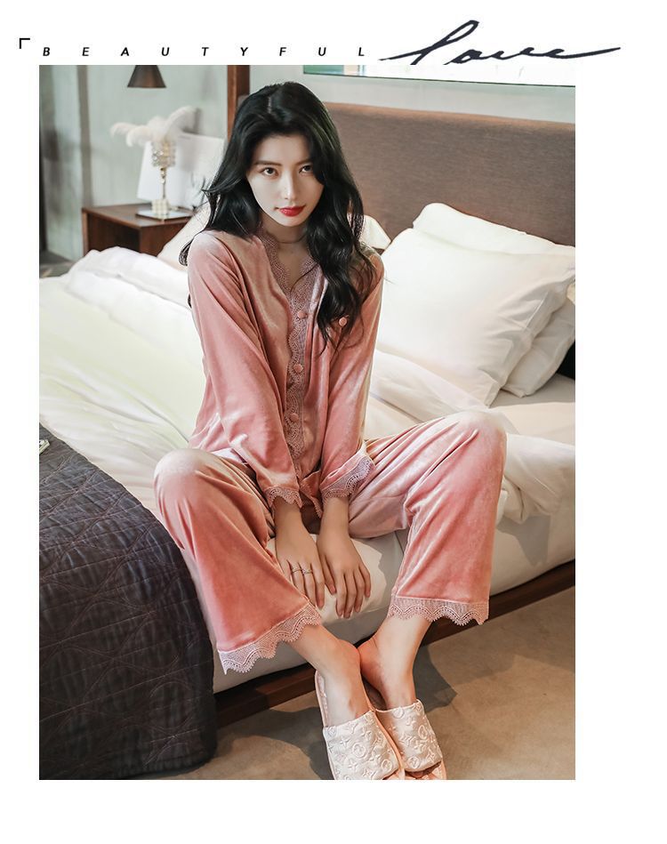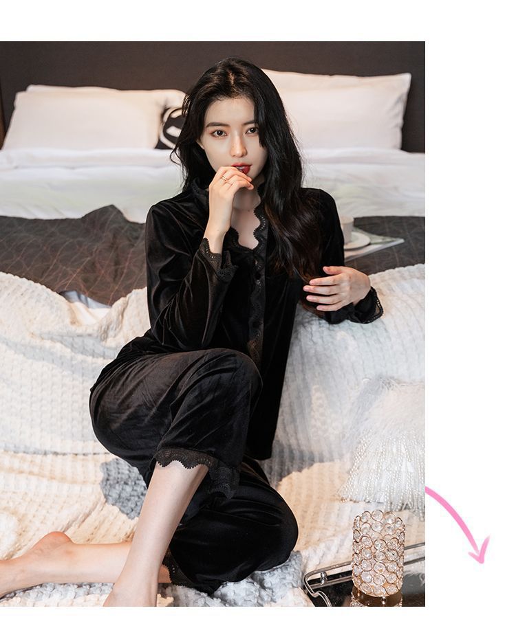 여성용 잠옷 가을 겨울 2022 신상 긴팔 가디건 세트 봄 벨벳 레이스 홈웨어 편안한 실내복스토어 가기