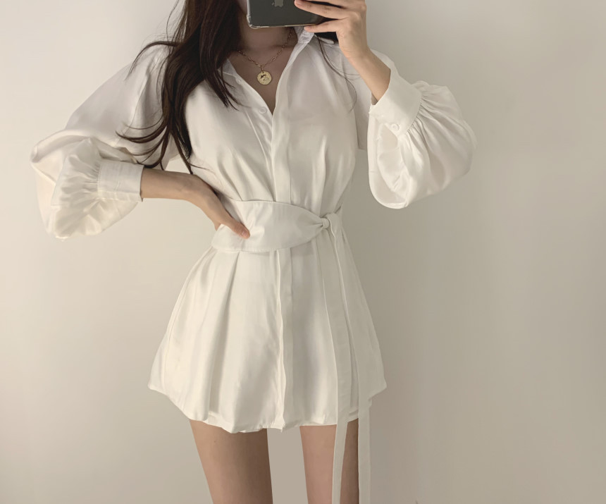 대외 무역 긴팔 여성용 허리 셔츠 2022 가을 디자인 감각 틈새 새로운 홍콩 스타일 셔츠 스커트스토어 가기