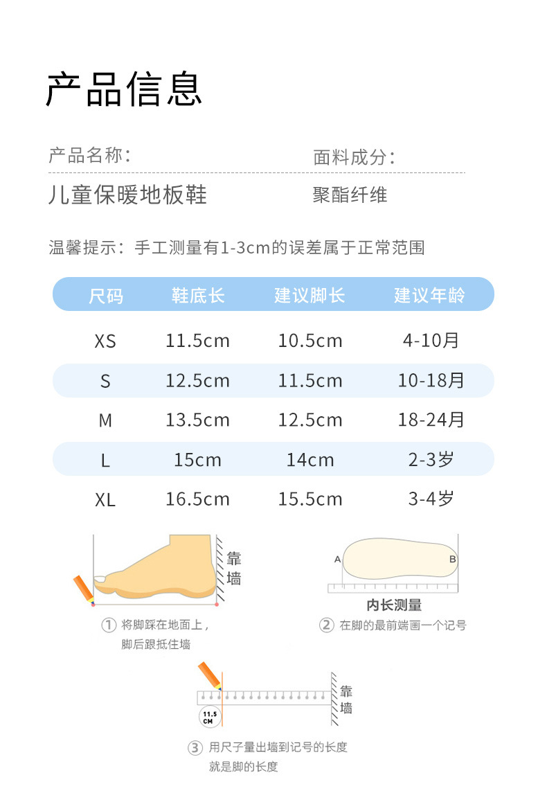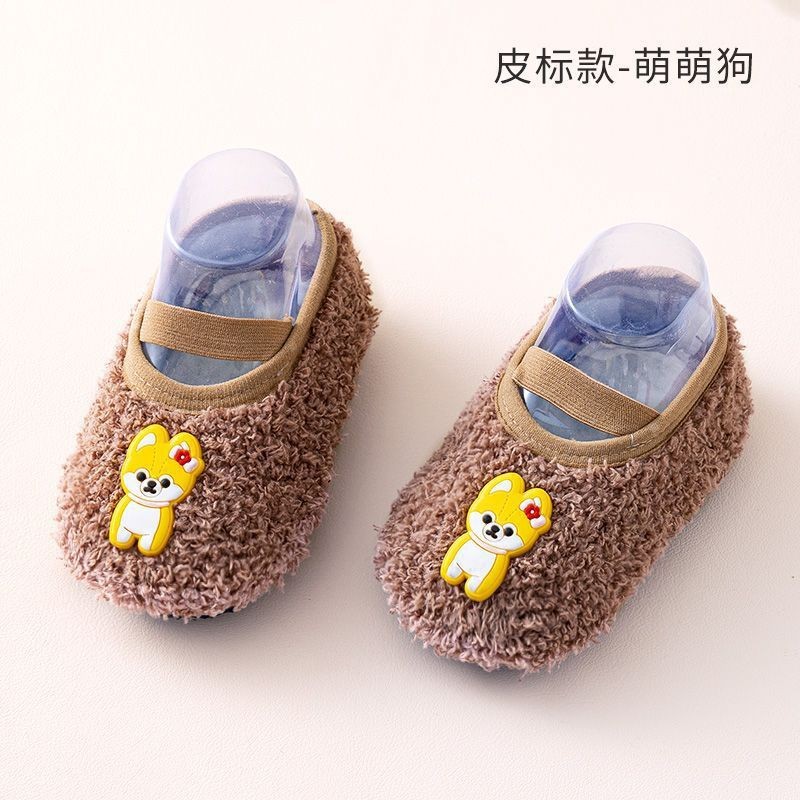 아기 유아 신발 가을과 겨울 어린이 바닥 양말 미끄럼 방지 유아 양말 세트 기모 두꺼운 바닥 신발 아기 양말