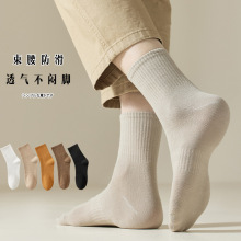 袜子男秋冬季新款纯色按摩底束腰中筒袜简约透气吸汗防滑男士袜子