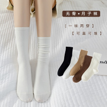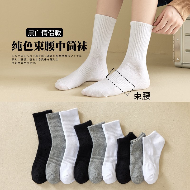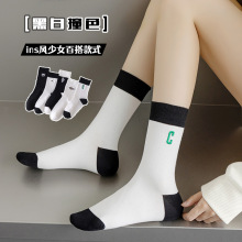 袜子女秋冬中筒袜女日系纯色堆堆袜ins潮束口运动袜黑白色长筒袜