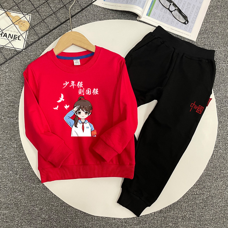 • 기모-경례 젊은 강한 여성-레드 + 블랙 (바지 프린트 cHiNA